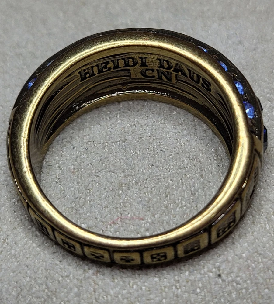 Type: Ring Antique: No Brand: Heidi Daus Color: Blue Country of Origin: China Style: art deco Shape: Round Vintage: No Occasion: Anniversary, Birthday, Christmas, Engagement, Father's Day, Graduation, Mother's Day, Valentine's Day, Wedding Main Stone Color: Blue Signed: Yes Theme: Art, Beauty, Fashion & Costumes, Music & Dance, Travel & Places, Vacation Handmade: No Ring Size: 8 Main Stone: Crystal Sizable: No