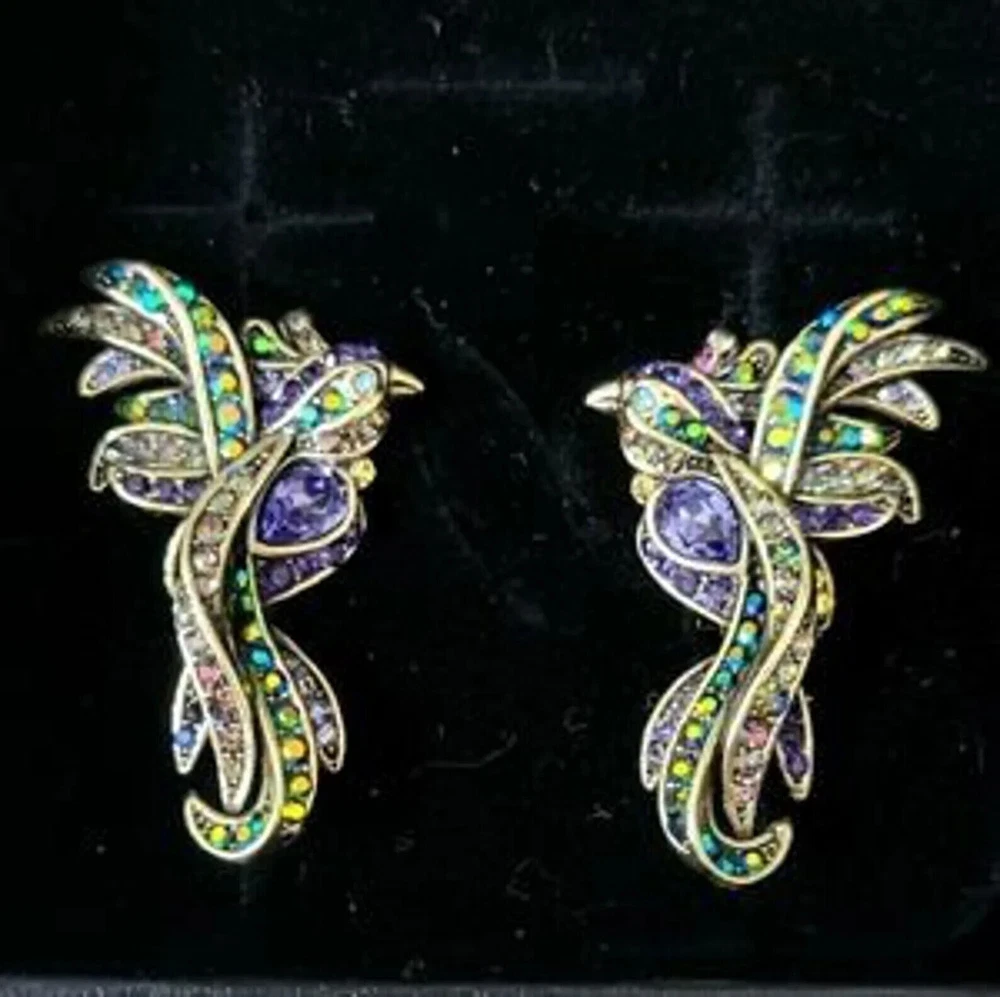 Heidi Daus Phoenix Rising Crystal Earrings Omega backs NWOT
