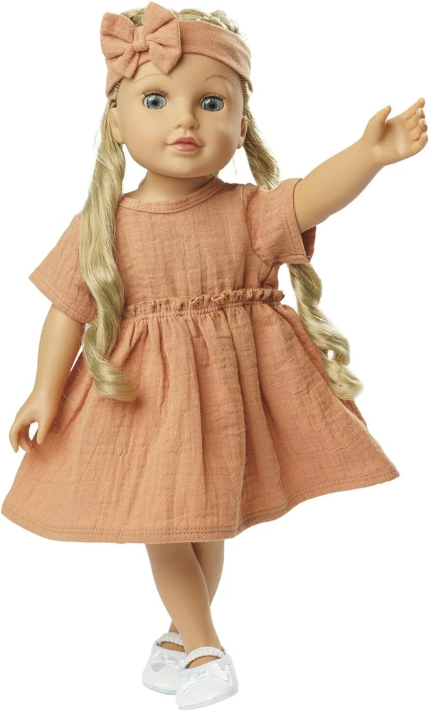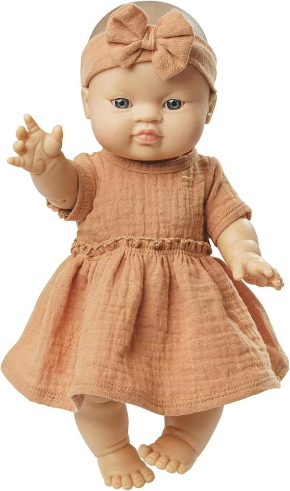 Further Details Title: Heless 1425 1425 100% Organic Cotton Clothes Set with Dress and Hair Band for Dolls and Soft Toys 28 to 35 cm, Brown Condition: New Type: Clothing MPN: 1425 Number of Items: 1 stuk Description: PRODUCT DESCRIPTION This adorable Heless doll dress made of 100% organic cotton gives you endless and safe play with your doll. The little ruffled dress and matching headband in trendy caramel brown are not only adorable, they also provide a sense of well-being. The soft muslin from organic farming and slightly gathered at the waist draws a beautiful silhouette to your doll. The matching headband with bow is elastic, so that it fits perfectly on the head of each doll. A doll dress with an affectionate design that impresses with its soft colour, high quality and simple elegance. The Velcro closure on the back allows the doll dress to be put on and take off with childish ease. The dress is suitable for most 11-14 inch dolls available on the market. It is also available in another version for dolls from 35 to 45 cm (art. No. 2425). The item comes on a wooden hanger. Playing with dolls, stuffed animals and their accessories can simulate realistic situations in everyday life, train the child's social behavior and stimulate motor skills. This is how doll fashion becomes a pleasure. Heless quality toys stand for love of design and support the development of your child. SAFETY WARNING No Warnings Brand: Heless Colour: Brown Material: Hand Wash Only Release Date: 04/15/2024 Item Length: 250mm Item Width: 270mm Item Height: 10mm Weight GMS: 60.00 As a traditional company, Heless pays great attention to high quality and, of course, compliance with all legal safety requirements. 2-piece doll outfit made of 100% organic cotton in caramel colour, consisting of a ruffle dress and a headband with bow; doll accessories come on a practical wooden hanger Thanks to the Velcro fastener on the back, the dress is very easy to put on and take off, which gives children a lot of fun when playing. Heless toys are developed with a love of design and detail. All products promote creative role play and stimulate playful imagination. Playing with dolls and stuffed animals can develop children's empathy ability and fine motor skills. The set is suitable for baby dolls, soft dolls and fabric dolls as well as stuffed animals from 28 to 35 cm. Missing Information? Please contact us if any details are missing and where possible we will add the information to our listing.