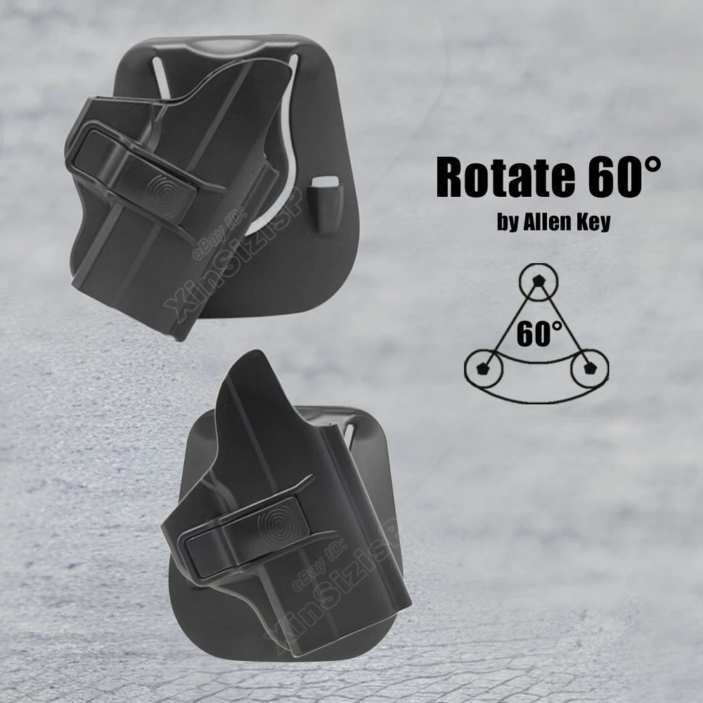 High Quality Military & Police Grade Polymer OWB Holster Specially Designed For Fast Draw During Duty Or Shooting Competition. Outside the Waistband Holster with Paddle attachment method Holster fit Springfield Armory Hellc at Springfield Hellcat Micro Compact 3" 9mm Luger Springfield Hellcat Micro Compact OSP 3" 9mm Luger Springfield Hellcat RDP Micro Compact 3.8" 9mm Luger (It perfect fit the gun with Optic Mount Mini Sight above on the end of the barrel, But without laser and no embedded chassis, and no flashlight style ) High S afety Auto locking system achieves an audible click when you holster the weapon, which can secure your weapon inside this OWB holster to ensure ultimate safety. It is designed to be quickly drawn and re-holstered for easier access by pressing release button with your finger whenever needed. Ease And Comfort Ergonomically-designed thinner paddle holsters is easily clipped anywhere on your belt or inside the pants waistline, it is convenient to conceal your weapon under your clothing. A djustable Simple set cant from 0-60 degrees to fit a comfortable position with Allen key Materials & Durable This polymer holster is made of high standard polymer that is waterproof and durable, almost no maintenance required, adapt to every bad environments. In the Package: · 1*Holster with Paddle Attachment · 1*Allen Key Shipping: Ships same day or next except Sundays and Holidays ! Free shipping! Ship by USPS First Class Package. 100% MONEY BACK GUARANTEE. Any question please be free to contact with us First.Thanks!