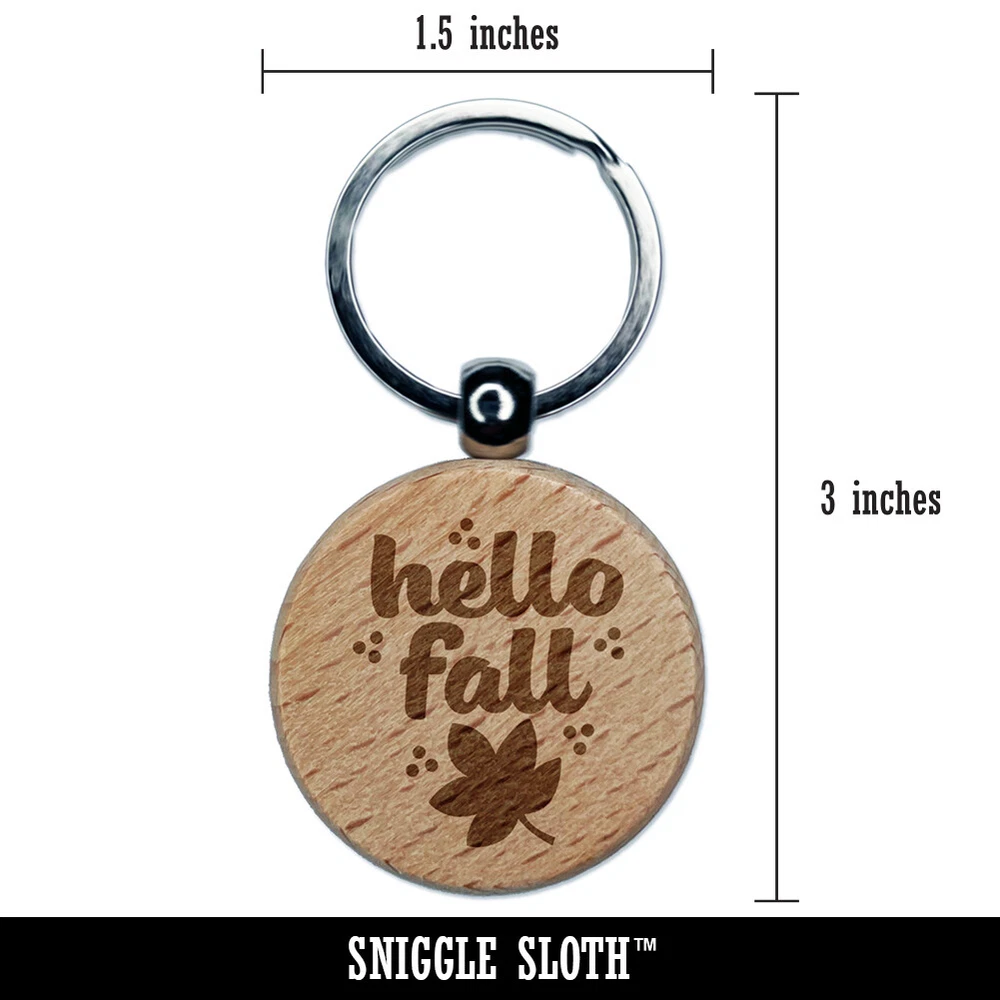 Hello Fall Engraved Wood Round Keychain Tag Charm