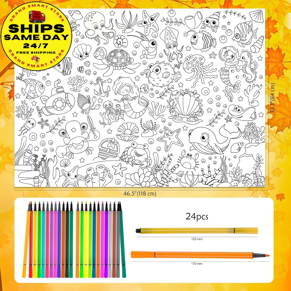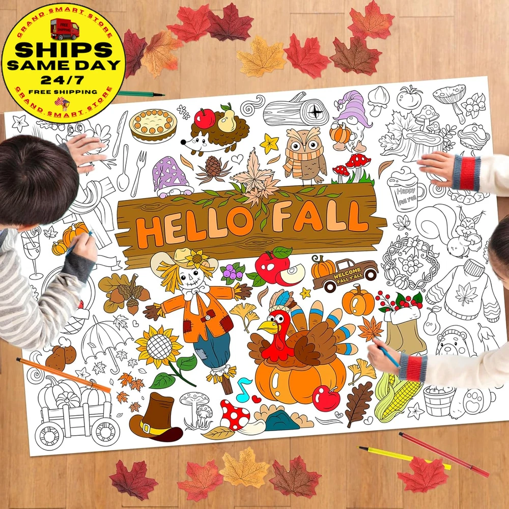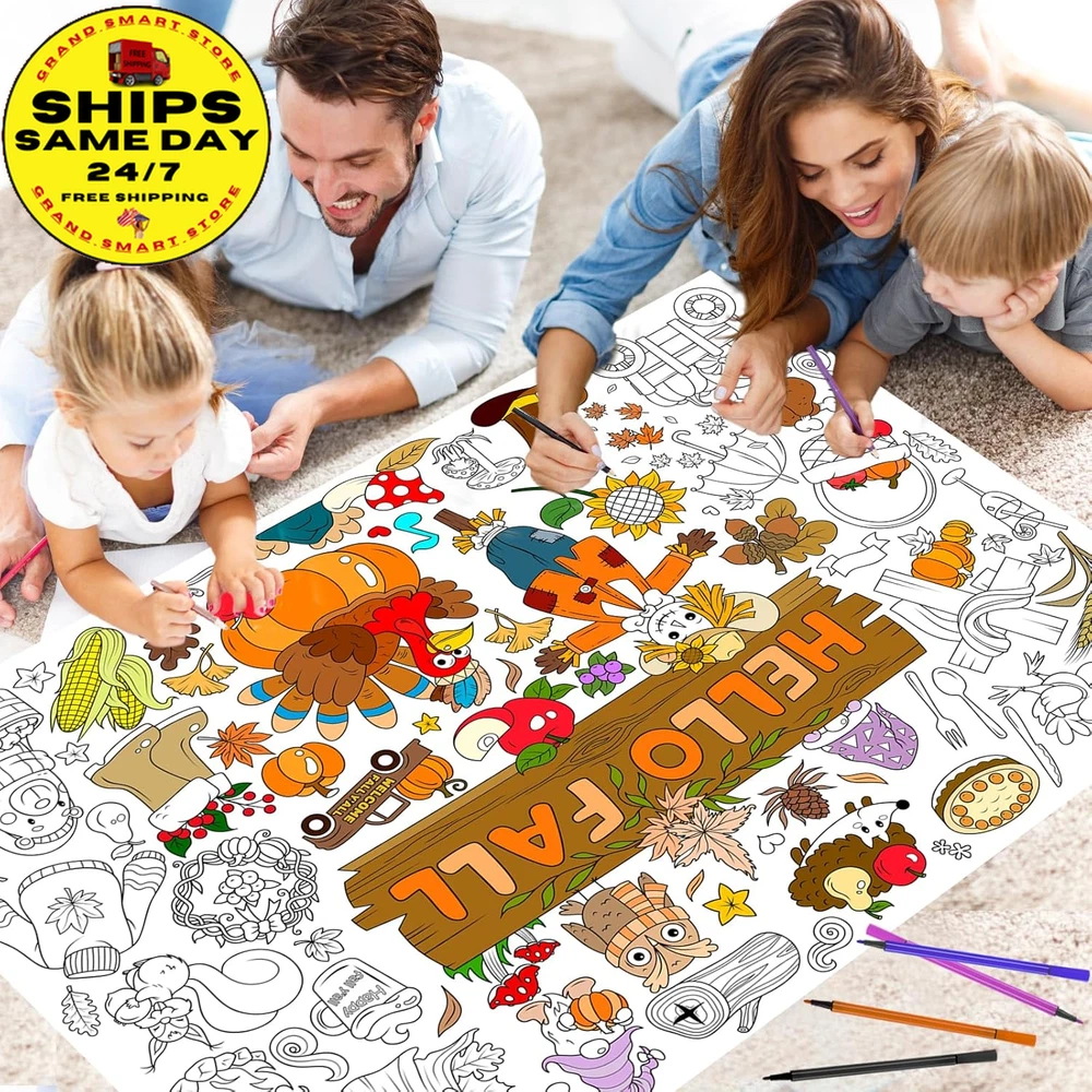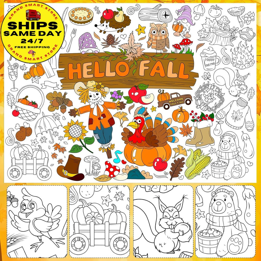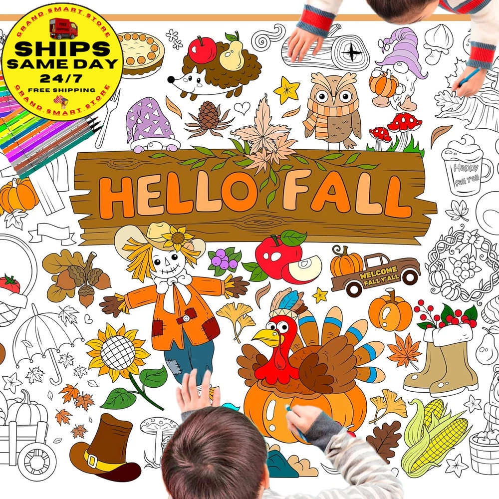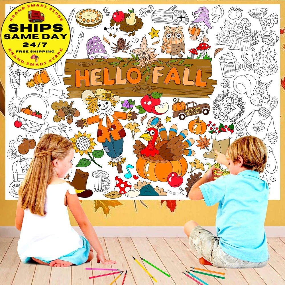 Hello Fall Jumbo Coloring Poster with 24 (12 Colors) Coloring Pens,Autumn