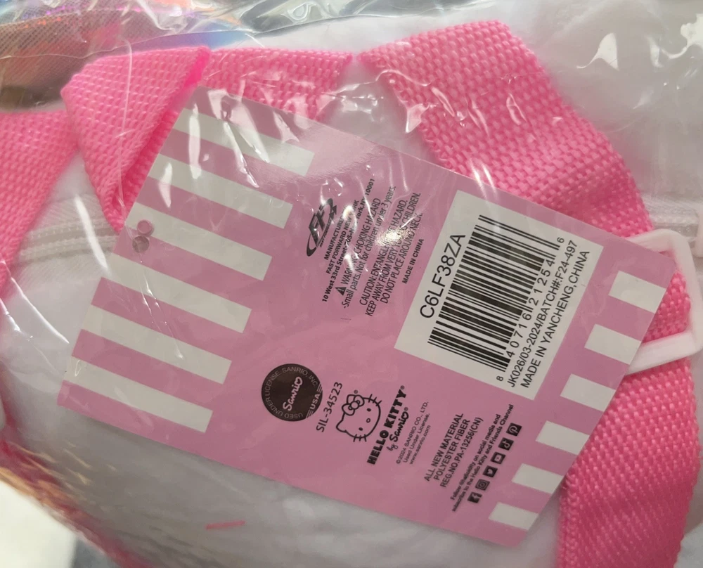 New with tag. Please see photos for dimensions. This is a cute backpack with adjustable straps. The zipper to inner pocket is located on the head and the pocket is about 5 inches deep and 6 inches wide. Great for any Hello Kitty fan!