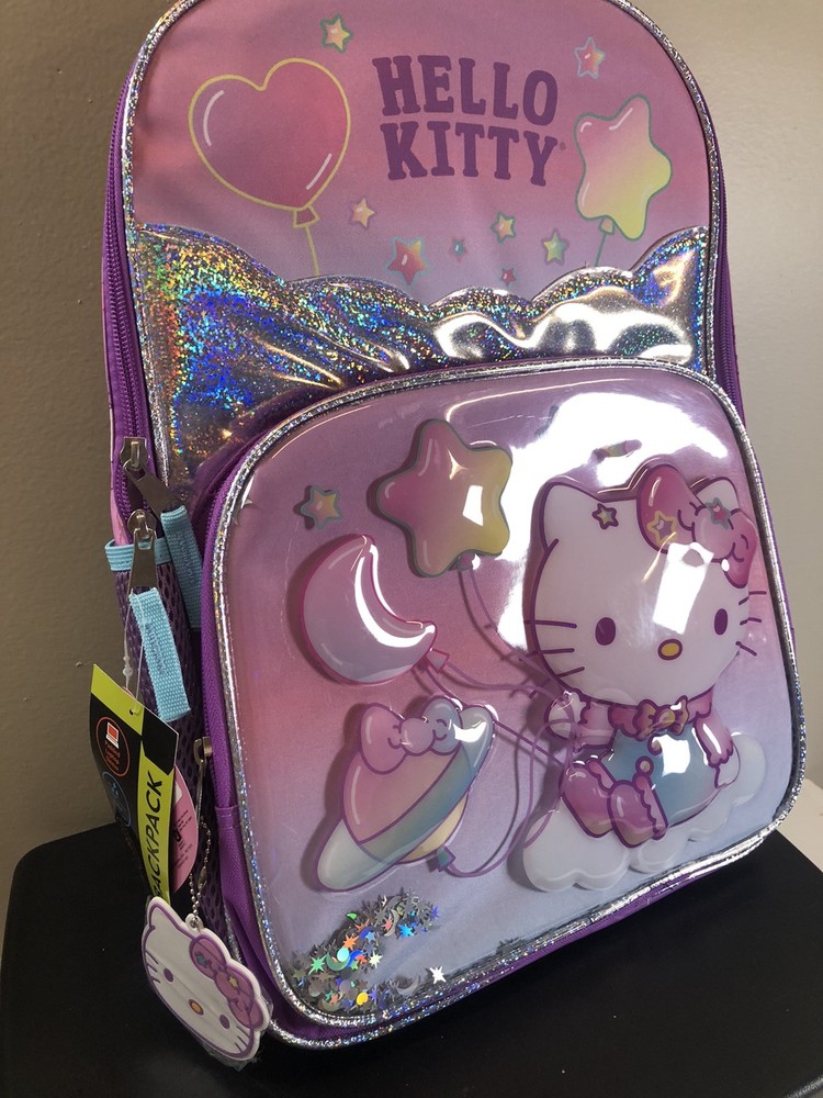 Hello Kitty 17" Backpack "On A Cloud" w/ Keychain – Girls' School Bag – NEW Condition: Brand New – Unused with original tag and attached keychain Shipping Info: Buyer pays shipping | 1-day handling | Ships via USPS, UPS, or FedEx with tracking Key Features: Official Sanrio Hello Kitty “On A Cloud” design Full-size 17” backpack – fits school supplies, books, and folders Features a Hello Kitty graphic on clouds with pastel colors Includes matching Hello Kitty bow-shaped keychain Adjustable padded straps and top handle for comfort Spacious zippered compartments and side mesh pockets Perfect for school, daycare, travel, or gifting Product Description: Make school magical with this adorable Hello Kitty “On A Cloud” 17” Girls' Backpack featuring dreamy pastel colors, clouds, and Hello Kitty floating in the sky. This large backpack has plenty of space for books, school supplies, and essentials—and even comes with a detachable Hello Kitty keychain ! ✅ Brand new and ready to ship – perfect for school, travel, or Hello Kitty fans. From Our Small Business: We’re a family-run store that appreciates every order. Your purchase helps support our dream—thank you for choosing us! Shipping & Returns: ✅ Ships in 1 business day ✅ 30-day returns accepted (buyer pays return shipping) ✅ Carefully packaged with tracking included