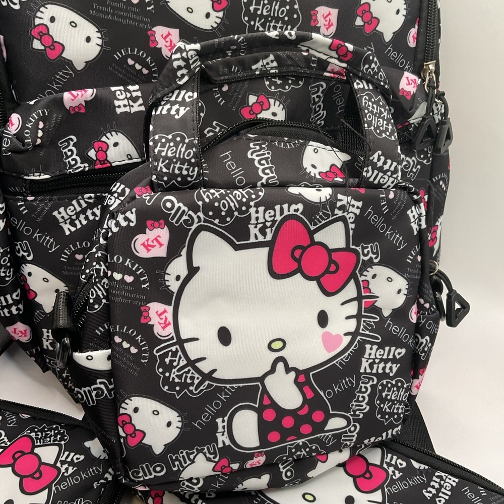 This 4-piece set includes a Hello Kitty outdoor backpack, pencil case, shoulder school bag, and wallet, all featuring the popular Hello Kitty character in a colorful animal print design. Made of durable polyester material, these items are perfect for school, with a zip closure for easy access. The backpack and shoulder school bag are designed for both boys and girls, making it a versatile and fun choice for any young Hello Kitty fan.