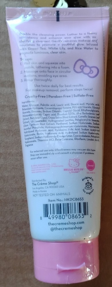 Skin Type: All Skin Types Period After Opening (PAO): 12M gtin13: 849980086532 Type: Cleanser Features: Animal Cruelty-Free, Paraben-Free, Sulfate-Free, Vegan Set Includes: Cleanser Formulation: Lotion Size: Regular UPC: 849980086532 Body Area: Face Brand: Hello Kitty