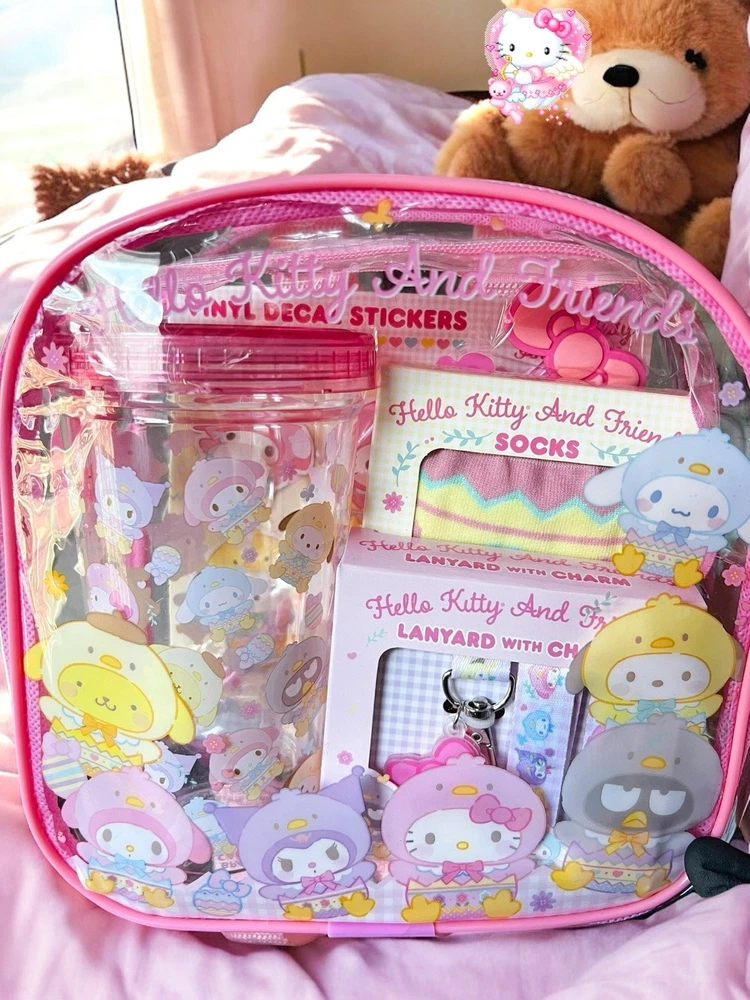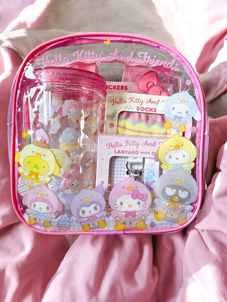 The Hello Kitty & Friends Easter Mini Pink Backpack Gift Set is a cute and colorful accessory for kids. This brand new tote features a floral pattern and Hello Kitty character design, making it perfect for Easter celebrations. The mini backpack is made of polyester and plastic materials, with adjustable straps for comfortable wear. Ideal for travel, activewear, parties, or casual outings, this stylish backpack is a fun and practical gift for young fans of Hello Kitty. Includes Hello Kitty, Badtz-Maru, Kuromi, My Melody, Pompompurin, cinnamoroll, and pochacco. Brand New Pet and smoke free home Fast shipping