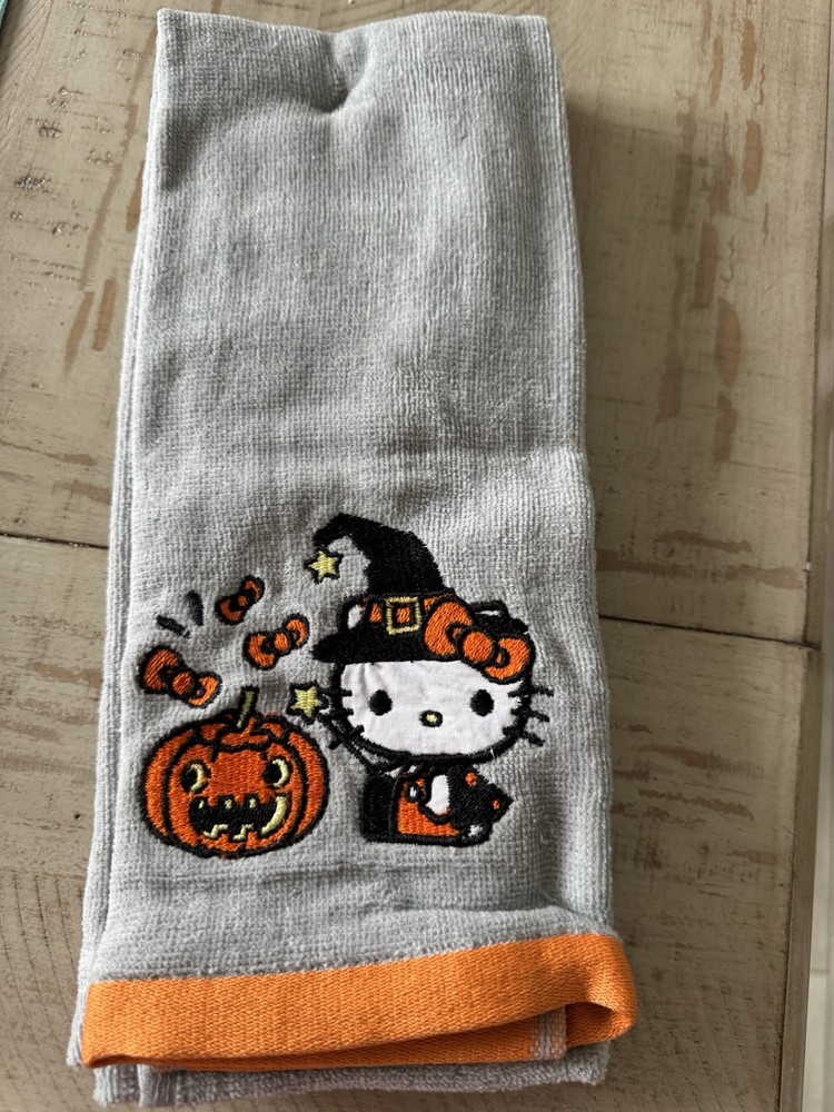 Hello Kitty 2 Pack Halloween Pumpkin Hand Towels Grey Orange Jack-o-Lantern New. Condition is New with tags. Shipped with USPS Ground Advantage.