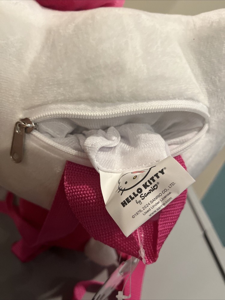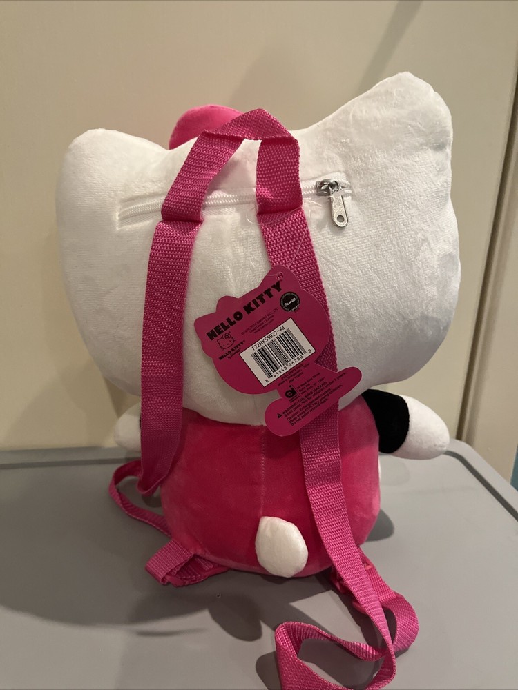 Brand new with tag Sanrio Hello Kitty large plush backpack. With adjustable nylon straps and zipper pocket on back. From a smoke-free home.