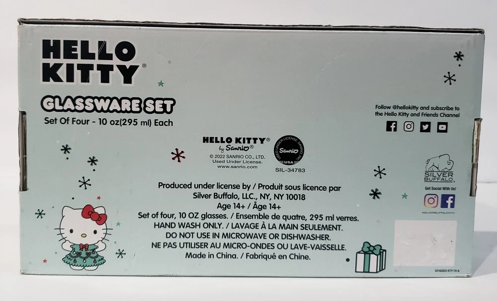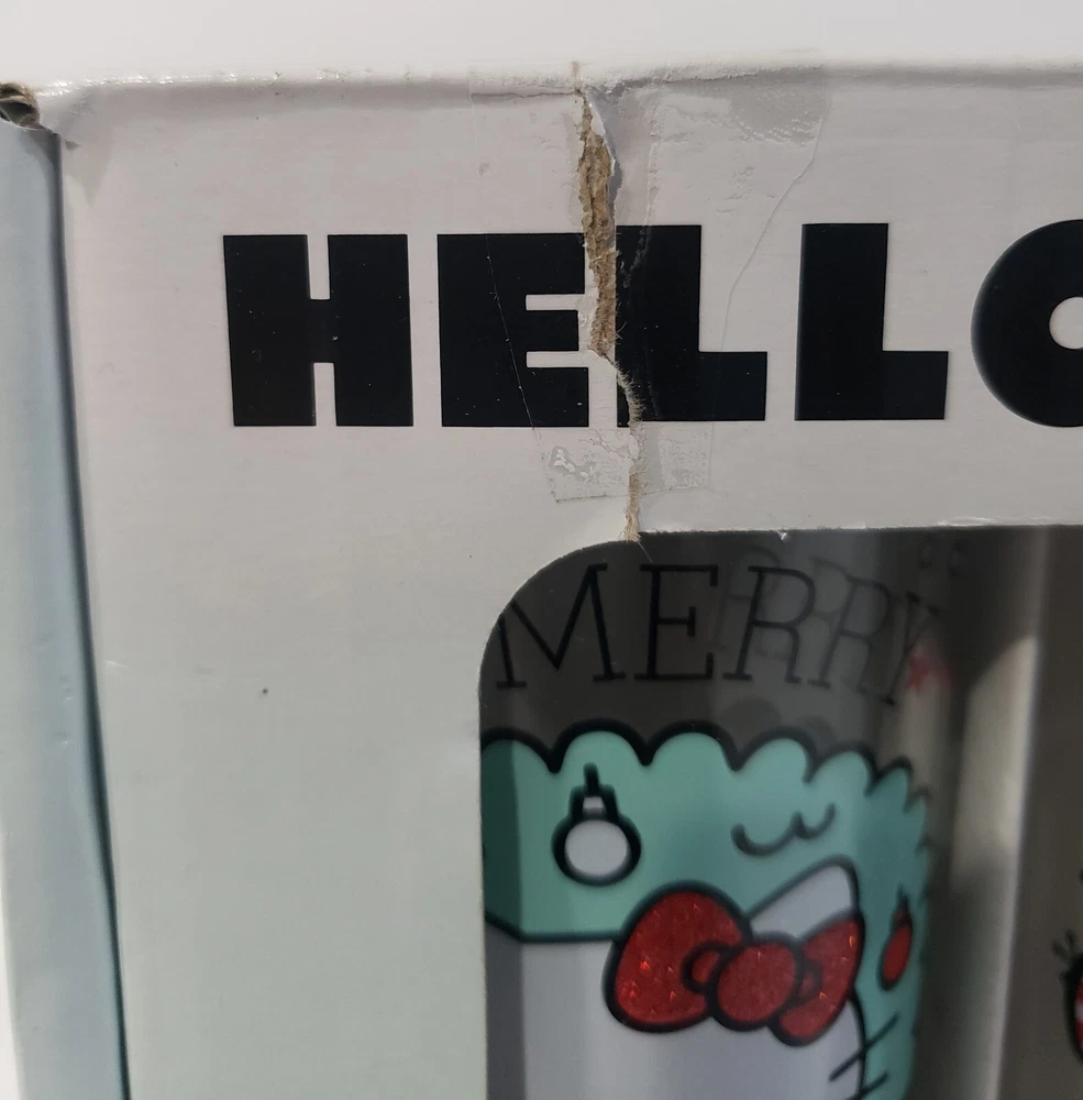 New hello kitty glass set. Box has some wear. Two rips on top of box held by tape. (See pics) Free shipping and handling