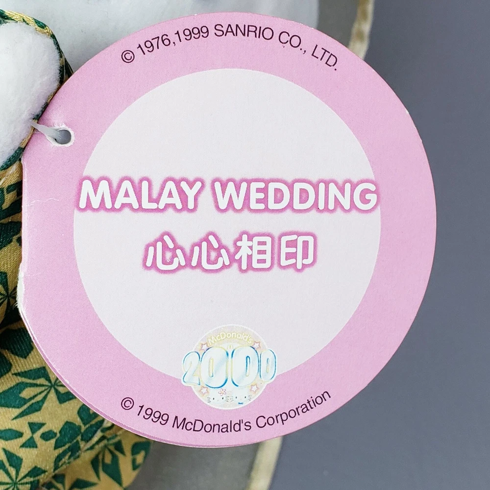 Hello Kitty McDonald Malay Wedding Sanrio Plush 1999 Pre-owned condition with light mark to her nose and a very small mark to the fabric under her nose. Plush is clean and free of smells, original tab attached. Please see the listing photos. Measures approximately 9" tall. Thank you for looking!