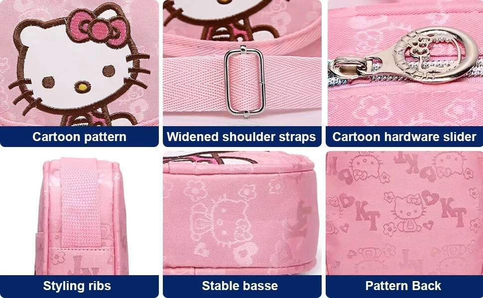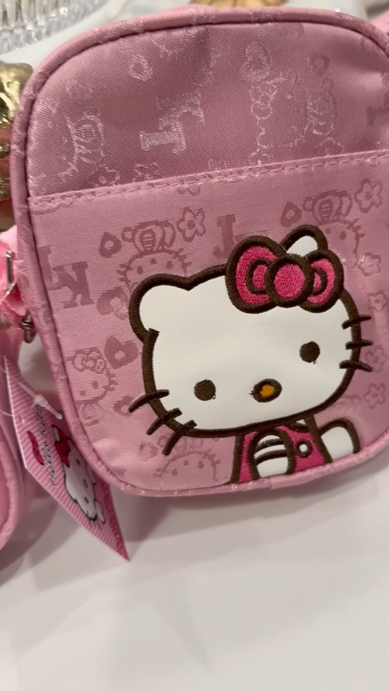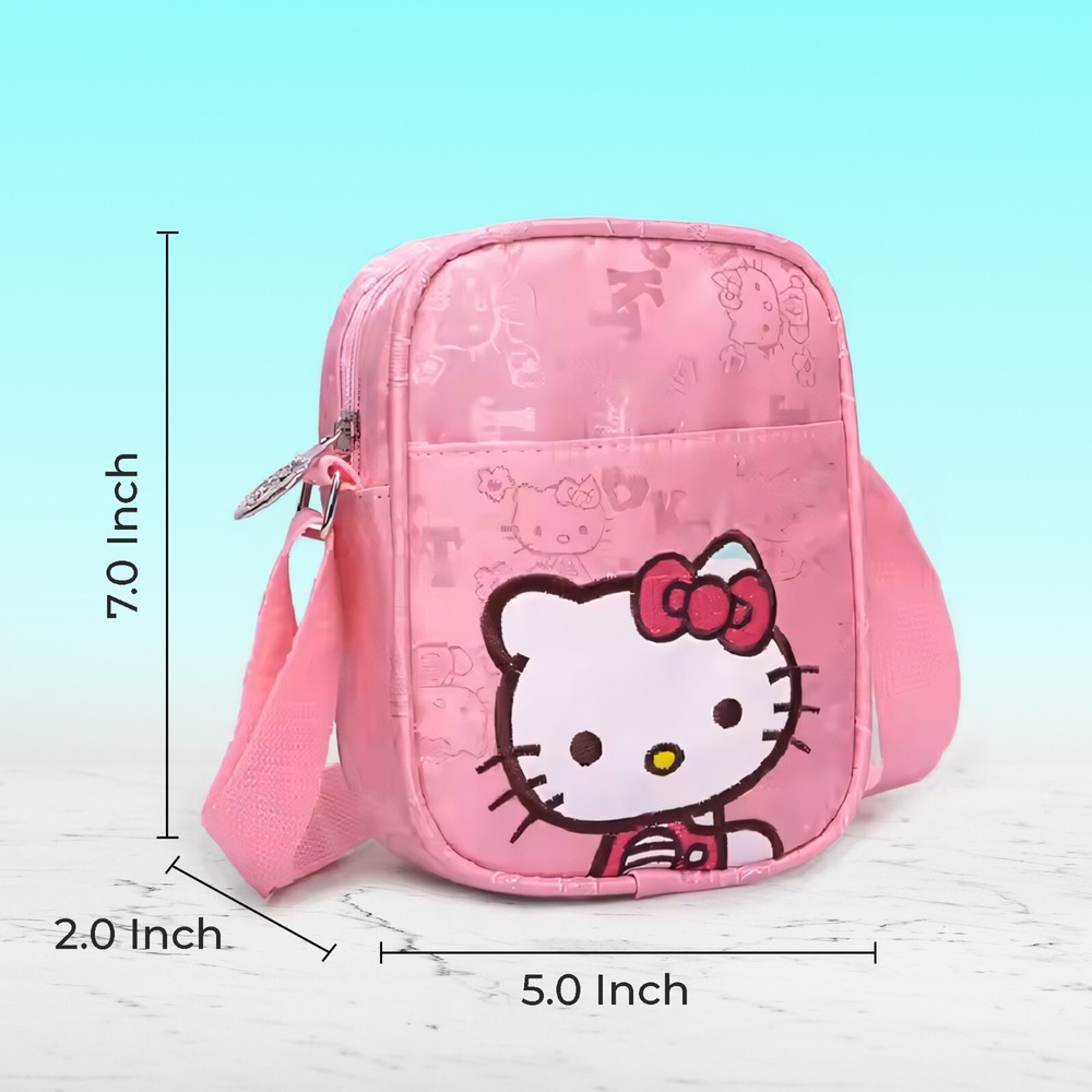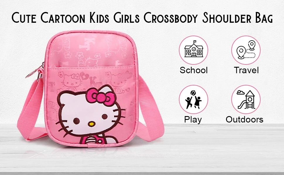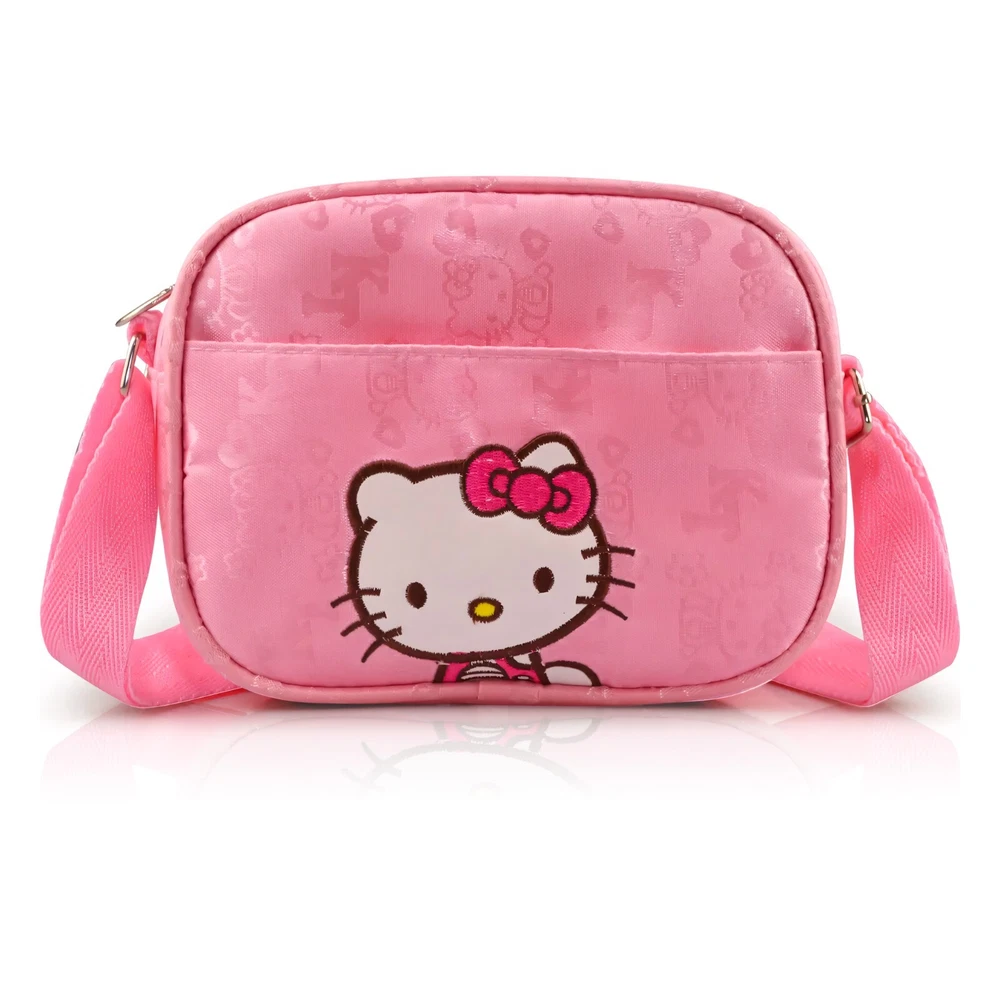 The Hello Kitty Mini Shoulder Bag is a stylish canvas crossbody purse perfect for young girls. With a cute animal print pattern featuring the popular Hello Kitty brand, this mini shoulder bag is both functional and fashionable. The zip closure ensures the security of belongings, making it a convenient choice for carrying essentials on the go. Made of durable canvas material, this versatile bag can easily complement various outfits and occasions for young Hello Kitty fans.