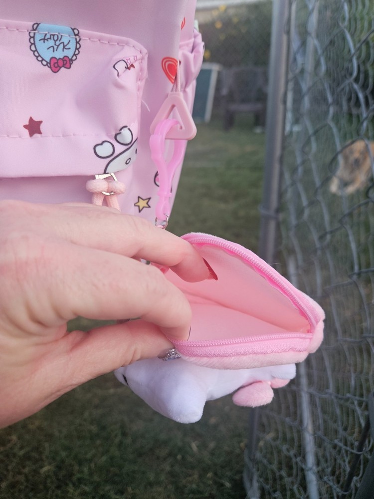 Going Back to School? Love Hello Kitty? Full Size Backpack... with a cute coin purse for the outside. Will hold a water bottle on each side. Plus pockets on the inside. Padded shoulder pads. This is the cutest bag ever! Very sturdy too. I Ship all my products through UPS Ground.