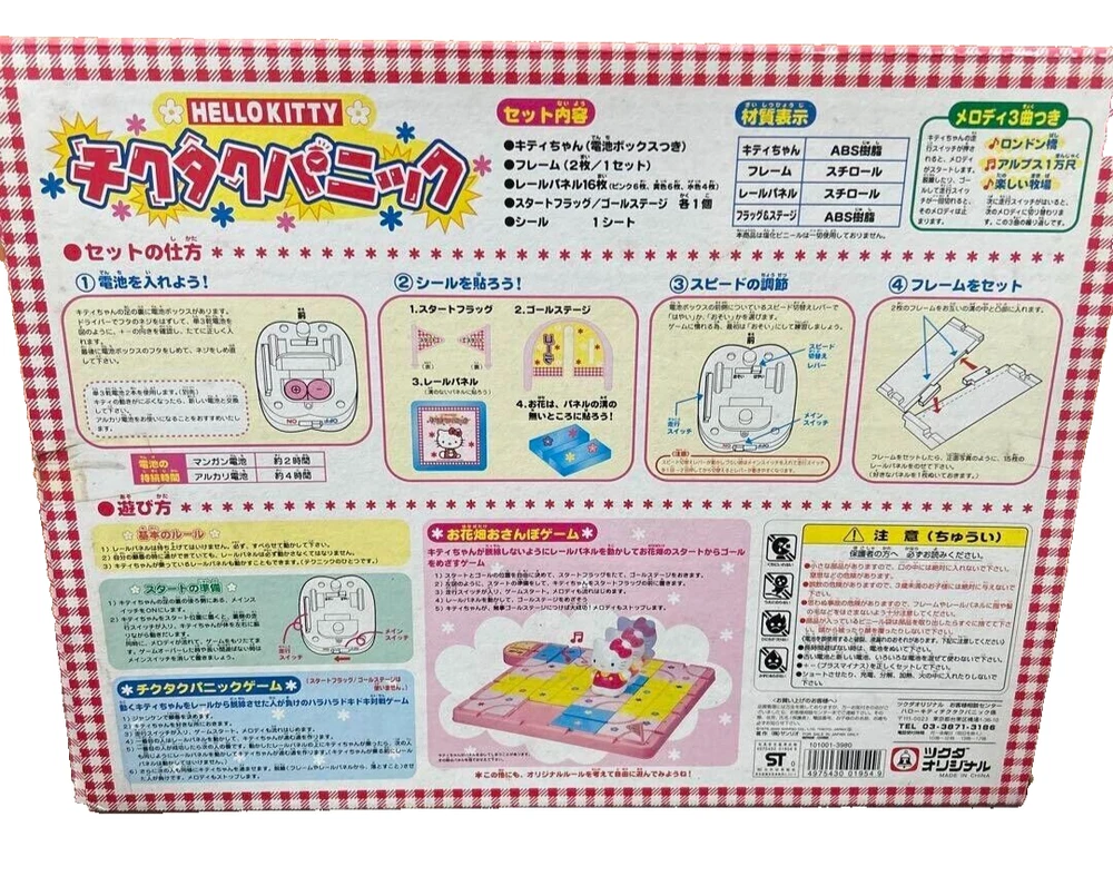 Description This is "Hello Kitty Tick-Tock Panic" released by Tsukuda Original. It's a family game that was popular several decades ago. It is new and unopened, so I cannot check the operation. Shipping We will ship by FedEx . We always send the item with a tracking number. So please place an order without any concern on delivery. You can always track the delivery status. Due to Shipping company Service delay, estimated arrival time can be delay. Please understand it. Depends on custom in your country also. So if it is late please contact local post office or carrier with tracking number. International Buyers - Please Note: Import duties and taxes are not included in the item price or shipping cost. Please check with your country customs office to determine these additional costs prior to bidding or buying. Additionally, if the delivery address is in a remote area, there may be additional charges by FedEx or DHL. If such charges occur, you may be asked to pay an additional $15 to $20.