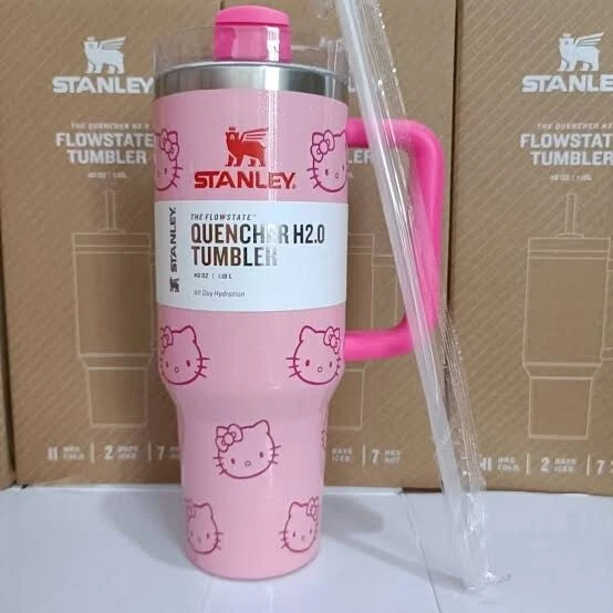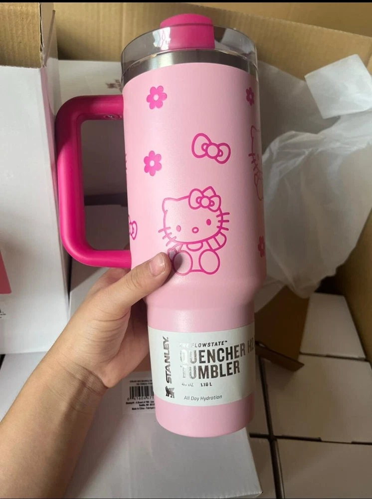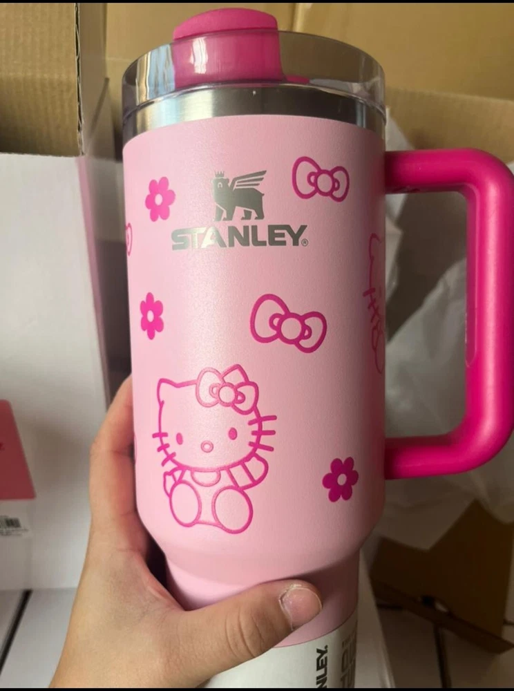 This Hello Kitty X Stanley tumbler is the perfect addition to any collection. With a solid pink color and Hello Kitty Barbie character design, it is sure to stand out. The 40oz stainless steel tumbler has a drink-through lid and comes with a straw for easy sipping on hot or cold beverages. The insulated tumbler is perfect for teens, adults, and girls who love to show off their love for Hello Kitty. It has a capacity of 1L and is made by the renowned brand Stanley. This tumbler is a must-have for any fan of the popular character and is sure to be a hit at any party or event.