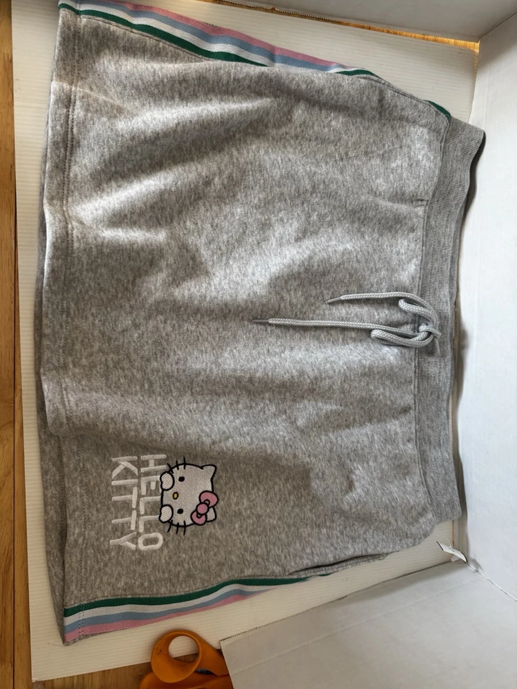 NEW Hello Kitty Size XL Heather Grey Fleece Tennis Skirt W/Pockets & Tie String