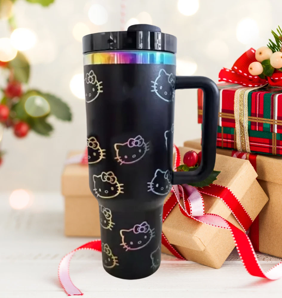 Laser Engraved Rainbow Tumbler Gift Add a touch of charm and color to your day with this adorable Hello Cat laser engraved rainbow tumbler! Perfect for Cat fans, this tumbler is made with high-quality stainless steel and features a stunning laser-engraved design of the iconic Hello Cat. The rainbow finish adds a vibrant, eye-catching touch that makes it ideal for brightening up any occasion. Whether you're sipping your favorite hot coffee or refreshing cold drinks, this tumbler keeps your beverage at the perfect temperature while showing off your love for all things cute! Care instructions for longevity: - HAND WASH ONLY - Gently wipe with warm soapy water & rinse. - DO NOT SOAK - DO NOT SCRUB - Not dishwasher-safe - Not microwave-safe The design on this tumbler is permanent, meant to hold up under washing, condensation, etc. Once the tumbler is designed it is not dishwasher safe and shouldn’t be soaked for long periods. Handwashing is the best way to care for the Tumbler. S H I P P I N G • T I M E S • Our items are individually made with love for each of our buyers. Because of this, our processing time is 4-7 business days (depending on order volume) plus transit time, but typically much faster. We know our customers want their items as quickly as possible!. Please note that processing time does not include shipping time 7-9 arrive to destination • QUESTIONS • Message me! I’ll get right back to you as quickly as I can! SATISFACTION GUARANTEE: • If your purchase does not arrive to you in the allotted shipping time you select at checkout, or the item is defective/damaged, we will fully refund your order or ship a replacement to you immediately. PACKAGING; Our Tumbler are expertly packaged to ensure that you will receive your item in perfect condition. THANK YOU FOR TRUSTING US!