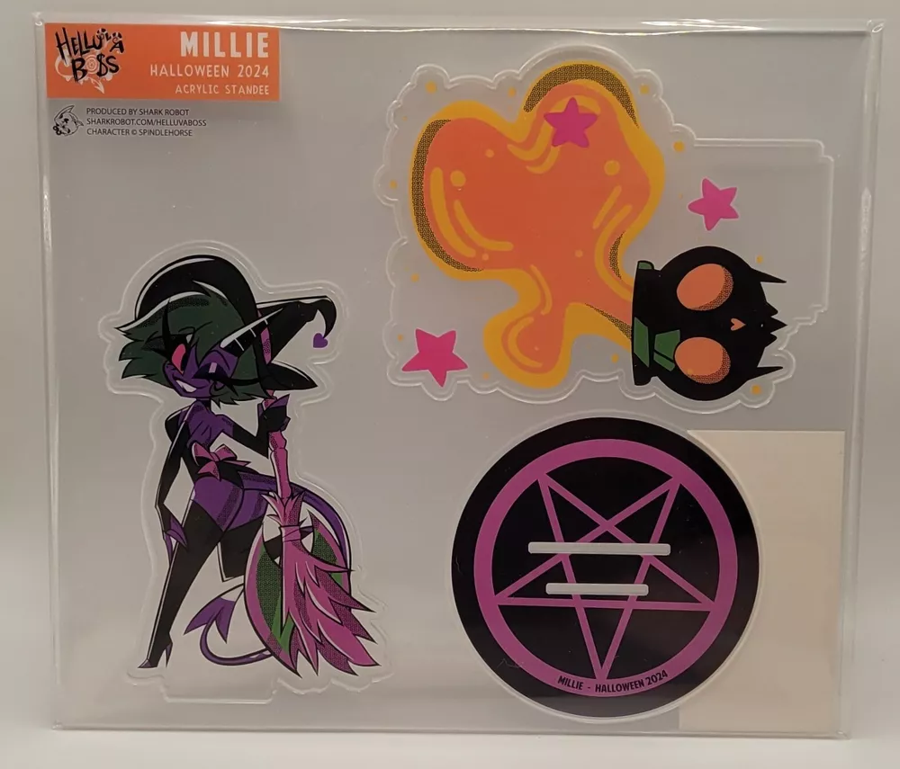 Helluva Boss Halloween 2024 Round 2 Variant 2 Witch Millie Acrylic Standee from Sharkrobot. Item sold as is. New, unopened. Standee has a protective film that must be removed before displaying. Comes from a smoke-free home. Not pet free. Please see images for item specifics.
