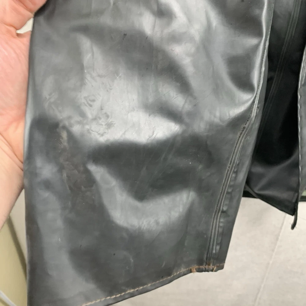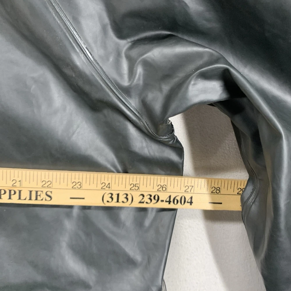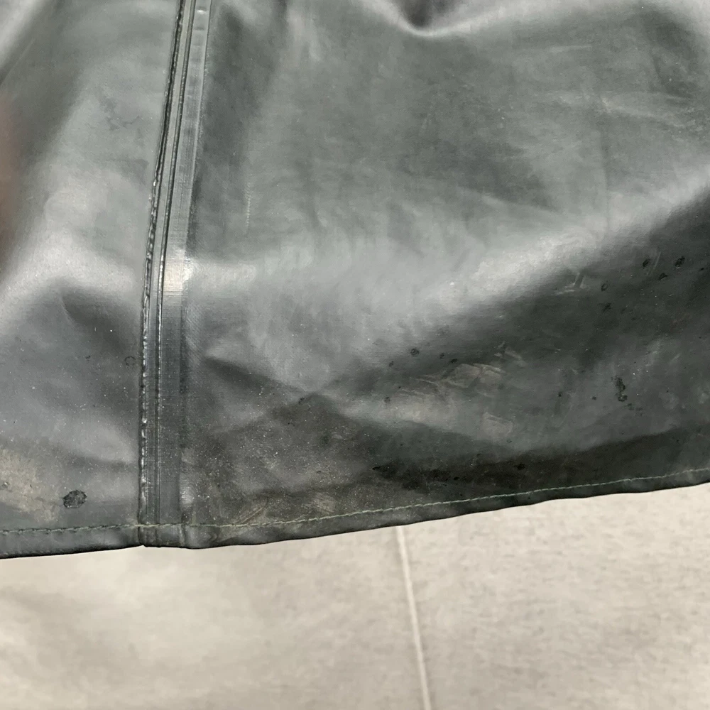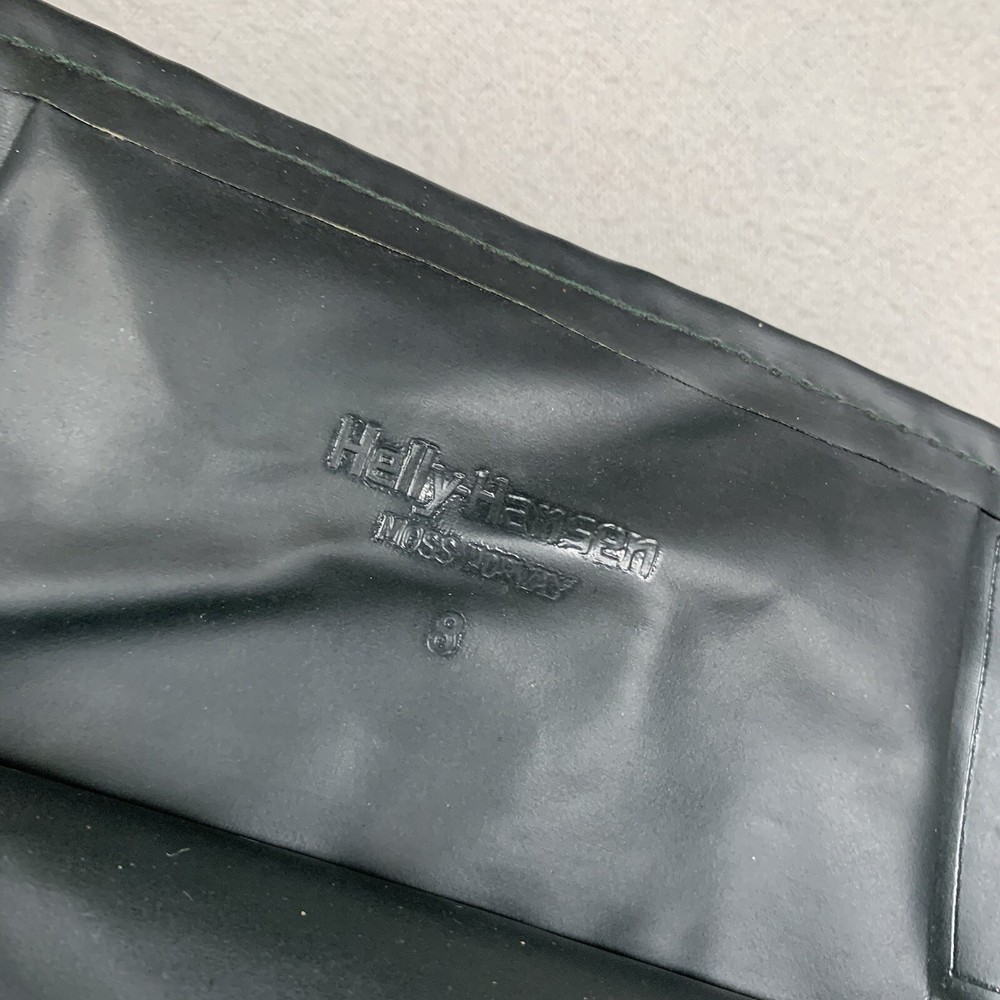 This Helly Hansen Rain Coat is a vintage-style piece designed for men in size L. Made from PVC material, it features a solid black color with a snap closure and button accents. The coat is waterproof, making it ideal for outdoor activities like fishing and hunting. With a hood and a regular fit, this coat provides protection from the elements while maintaining a classic and practical style.