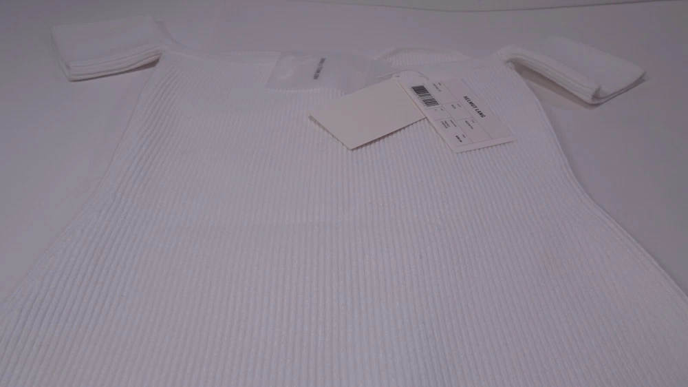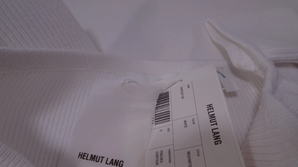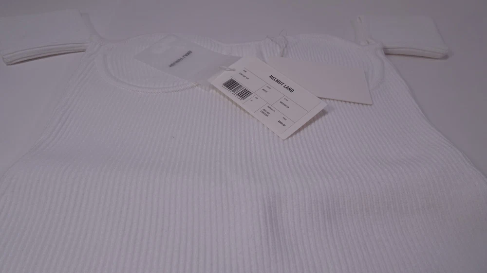 Helmut Lang Pinched Contour Cold Shoulder Top Size Medium NWT 265 The Contour top from Helmut Lang will suit many an occasion. The ribbed-knit style has a sweetheart neckline, supportive underwired cups, and attached off-shoulder sleeves. Material: 35% polyester, 7% nylon, 57% viscose, 1% elastane Made in China Care instructions: dry clean Underwired cups Item number: P00651401