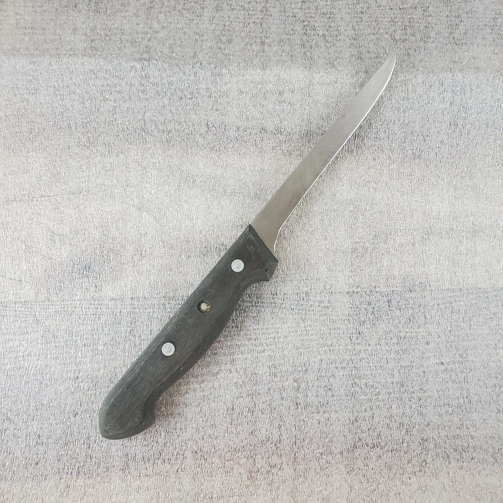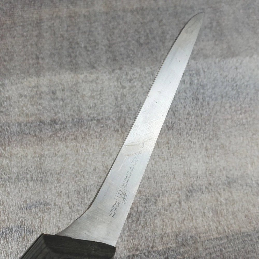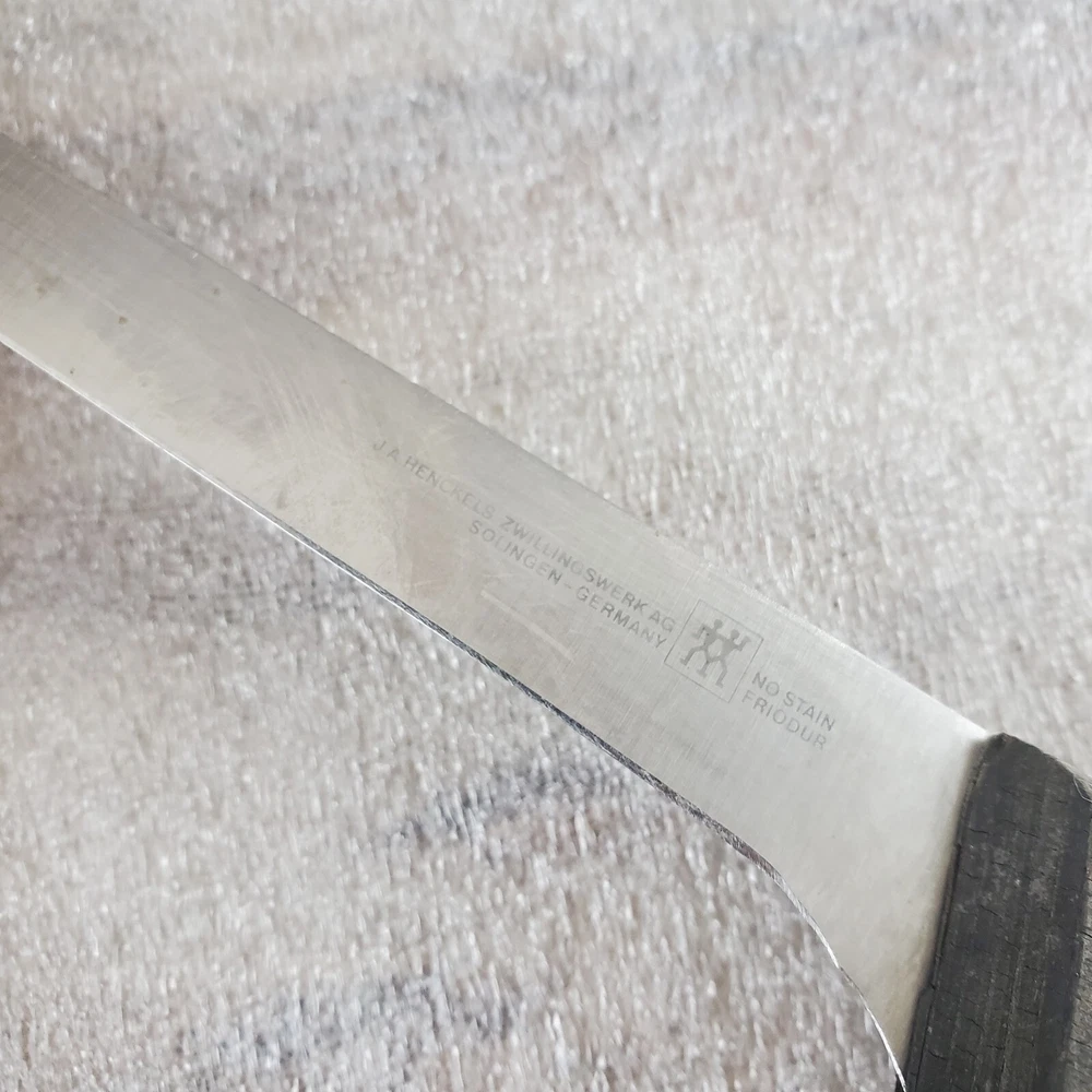 Zwillingswerk JA Henckels 5.25" Blade 11" Knife Solingen Germany No Stain DAMAGE Wood is starting to separate from knife at the beginning of the tang where the handle meets the blade. Middle Rivet on back has lost its top. I've tried my best to show condition in the photos. Please view the photos carefully for condition details. Don't forget to check out the other items in my shop. I'm getting in new fun things all the time. Thank you for looking! Have a great day!