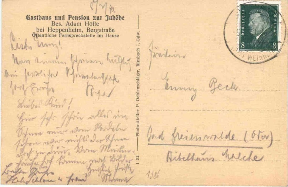 Unser Shop Verkäuferprofil Bewertungen Shop speichern Kontakt Heppenheim Bergstrasse - Gasthaus zur Juhöhe -722632 Anwendung der Differenzbesteuerung (kein Ausweis der UST) gemäß §25a UStG