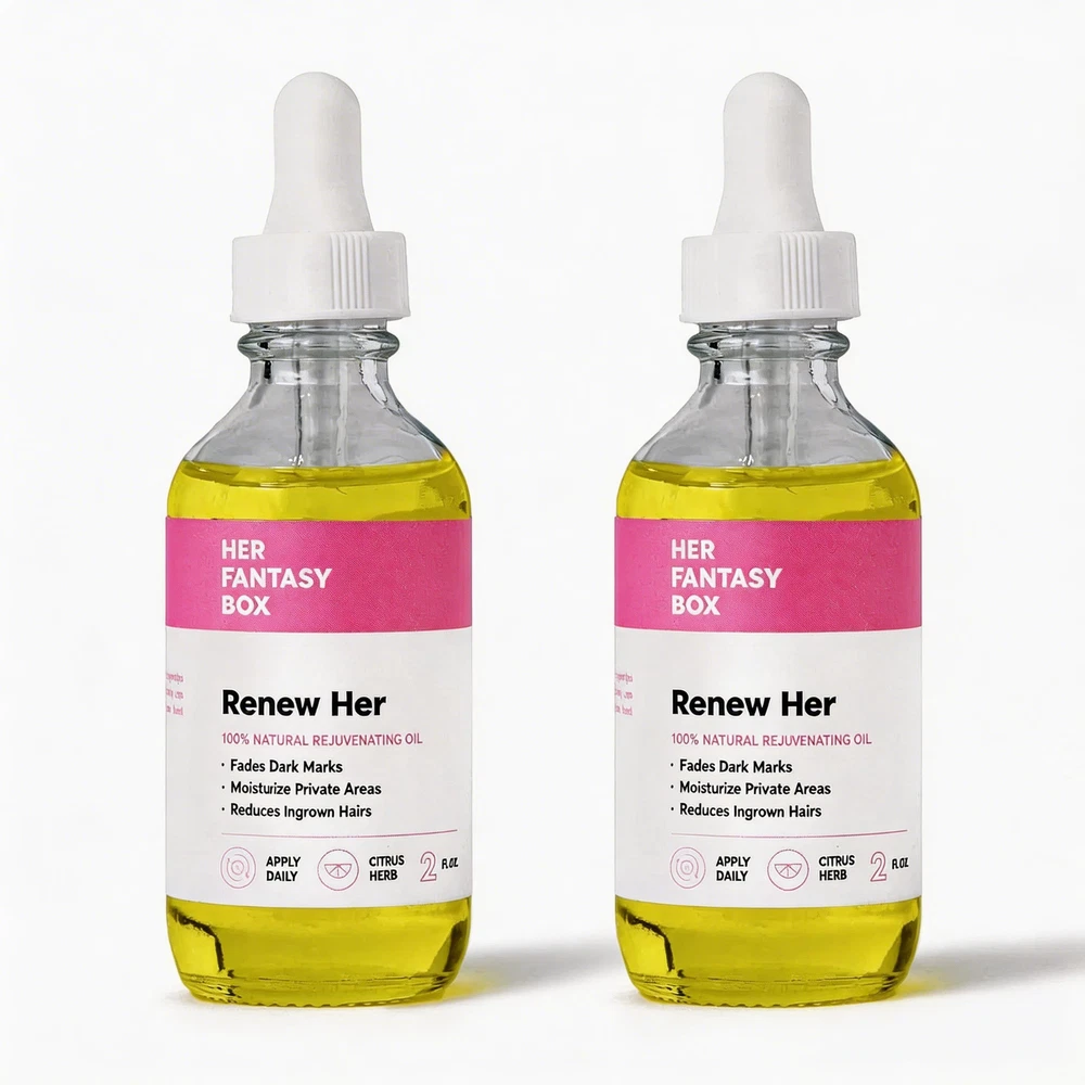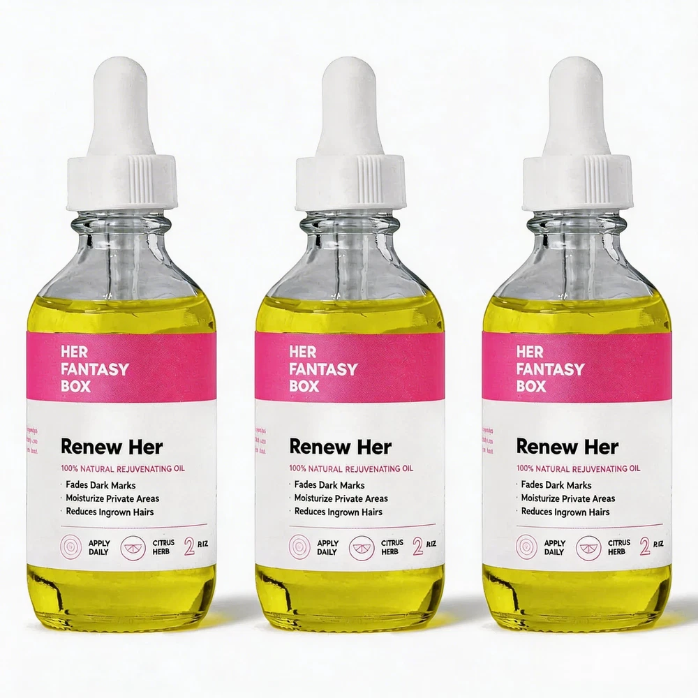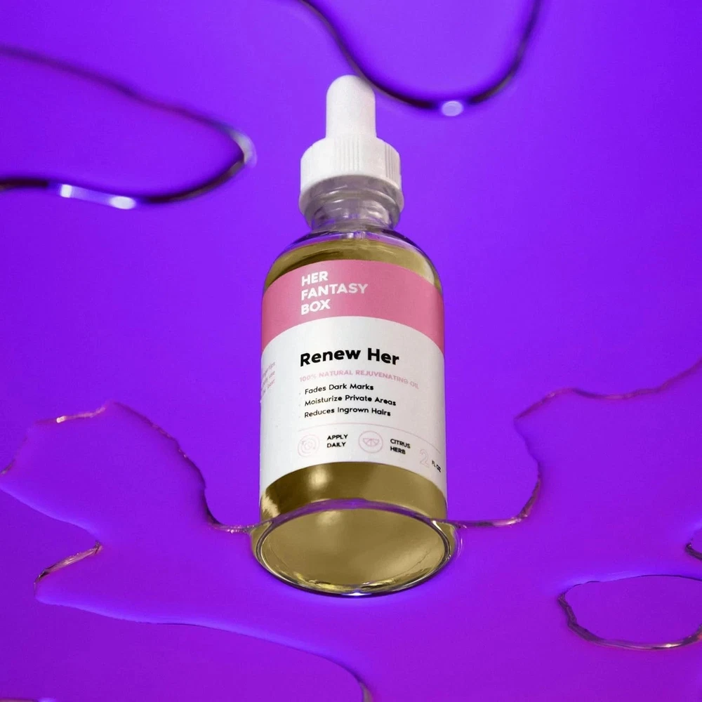✨ pH-Balancing and Skin Tone Improvement: Bid farewell to dark marks and welcome a revitalized look with balanced pH levels, boosting confidence in your intimate area. ✨ Soothing and Moisturizing Formula: Experience relief from irritation, swelling, and dryness. Reduce discomfort and provide essential moisture for intimate comfort. ✨ Helps Prevent Ingrown Hairs: Enjoy smoother skin and reduce the occurrence of ingrown hairs, promoting a more comfortable experience. ✨ Versatile Application: Enjoy its benefits on your entire body. Nourish dry areas and revel in the rejuvenating effects of this natural oil. ✨ 100% Natural Ingredients: We believe in the power of nature. That's why Renew Her Oil is crafted with the highest grade of 100% natural ingredients. It's free of harsh chemicals, ensuring it's safe for all skin types. Embrace a skincare solution that's as gentle as it is effective. ✨ Convenient and Easy to Use: Simply apply after showering or when feeling irritated, sore, or dry. Let the refreshing scent and rejuvenating effects uplift your mood and intimate well-being.