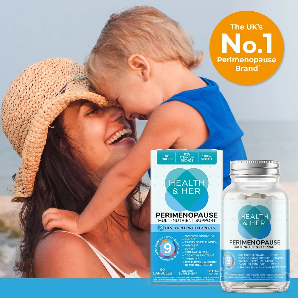 Tired of facing hormonal imbalances and disrupted and physical wellbeing during menopause? & Her has got you covered with its Perimenopause Multi-Nutrient Support that are crafted with essential vitamins, minerals and active , helping women in 9 different ways. With a blend of B6, C, D3, B12, Magnesium, , Iron, Siberian Ginseng and Ashwagandha, these offer many benefits - helps in regulating Hormones, reducing fatigue and tiredness, contributes to , emotional and cognitive wellbeing, helps in promoting collagen formation for normal functions of muscles, bones, teeth, skin & hair, and aids in boosting immunity. Contains Red Clover, which is a natural and convenient source of phytoestrogen. The are vegan, gluten-free and Non-GMO with no added preservatives and artificial colors. A daily dosage of these multivitamins will assist you in a comfortable menopause journey. With the help of the FREE & Her app, track the symptoms and get timely reminders to take your supplements without delay. From allowing you an easy access to guided and simple exercises to providing quick and useful expert advice in no time, you can find everything here! These statements have not been evaluated by the Food and Drug Administration. Many of these concerns are common in menopause-related life changes but may also be signs of deeper concerns. We suggest consulting your physician before taking any and Her supplements. THE UK'S #1 PERIMENOPAUSE * - Formulated by experts, the & Her Perimenopause supplements, with a blend of vitamins, minerals and active help provide support during the transition period of your menopause journey DEVELOPED BY TRUSTED EXPERTS TO SUPPORT PERIMENOPAUSE - These support women's mind & body wellbeing in 9 ways including Energy, Psychological Function, Hormone Regulation, Muscles, Bones, Skin, Hair, & Nails, Cognitive Function and ImmunityϮ. With ASHWAGANDHA and RED CLOVER CONTAINS A CAREFULLY FORMULATED blend of naturally sourced ingredients including vitamins, minerals, & phytoestrogens. HORMONE REGULATING INGREDIENTS including B6 FREE DIGITAL APP SUPPORT - As your personal trainer for menopause, the & Her app helps you track, learn and build positive lifestyle habits, with access to guided exercises & tools, expert advice & timely reminders to take your supplements. Search in the app for '& Her' OUR COMMITMENT TO YOU: Our supplements are made with high quality ingredients that are vegan, gluten-free and cruelty free. We want you to be happy with your choice and our nutritionist suggests that to get the best from our formulations take them alongside food, take at the same time every day, avoid caffeine, and give them time (at least 3 months) to work. If for any reason you don’t love these supplements within 30 days, reach out and we’ll be happy to help or answer any questions.