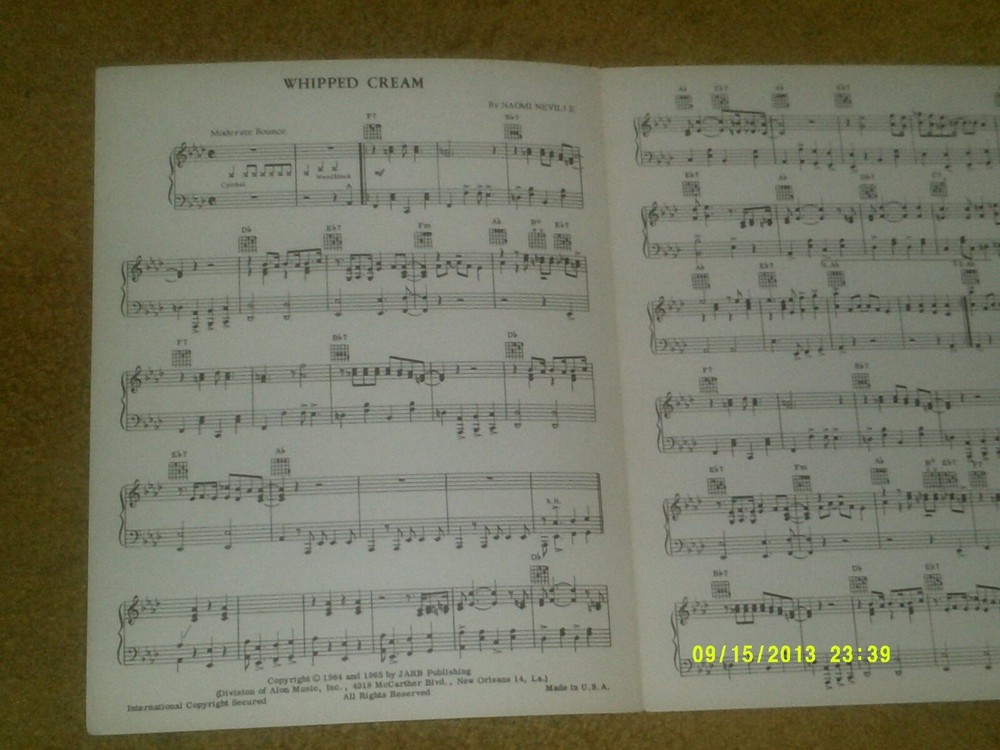 Herb Alpert Whipped Cream sheet music 1967 2 pages VG+ condition Allen Toussaint