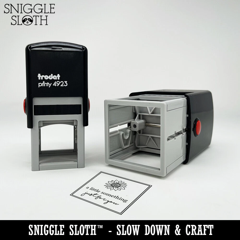 Slow down and craft with this charming self-inking rubber stamp from Sniggle Sloth. The stamp design shown features deeply etched rubber for excellent clarity. The stamp includes its own ink pad in the color listed for an all-in-one solution. The design is located on top of the stamp for easy identification. The size listed refers to the longest side of the stamp design. Use for stamping paper, folders, cards, gift wrap, journals, planners, and more. Use alone or combine with other Sniggle Sloth stamps. The stamp's ink pad can be easily removed to be re-inked to extend the stamp's usefulness. The materials in this stamp are sourced from top US companies and assembled in our Sniggle Sloth California facility to form a high-quality product you'll cherish for years.