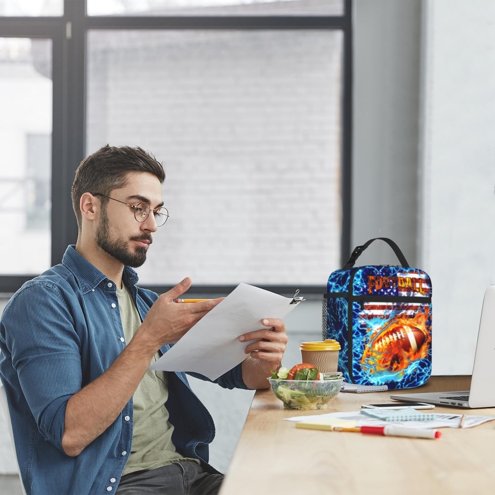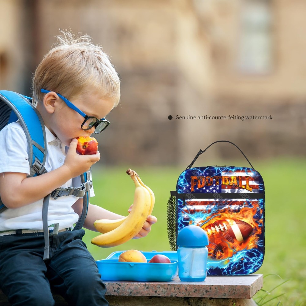 This lunch bag is a total game-changer! My son absolutely loves the cool lightning football design, and I'm impressed by how roomy it is inside while still being compact. Perfect for school lunches and sports practice - it's become his favorite accessory!