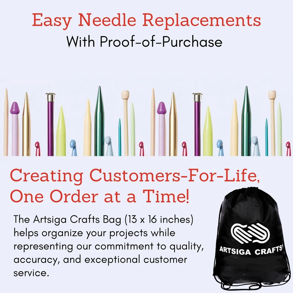 Includes 1 Heritage 4-Inch 5-Pair Interchangeable Circular Knitting Needle Set Handcrafted Ebony Sizes US 3, 5, 6, 7, 8, Silk Case, 2 Cords, 4 End Caps, 5 Markers and 1 Craft Project Bag. The highlight of the range is the elegant Ebony wood and the 24K gold finishing used in handcrafting all knitting needles and crochet hooks. Ebony is harvested in a careful and sustainable manner and is renowned for its smoothness, resilience and strength. It also one of the most expensive woods in the world. The richly colored cases are made of the exquisite Khadi natural silk, also used in elegant fashion apparel in India. The exterior motif is embroidered while inside the case you will find plenty of room for additional accessories. Craft Project Bag measures 13 x 16 inches, Includes a drawstring for easy closure and shoulder straps for easy carry-on and keeping projects on-the-go. Includes 1 Heritage 4-Inch 5-Pair Interchangeable Circular Knitting Needle Set Handcrafted Ebony Sizes US 3, 5, 6, 7, 8, Silk Case, 2 Cords, 4 End Caps, 5 Markers and 1 Craft Project Bag The highlight of the range is the elegant Ebony wood and the 24K gold finishing used in handcrafting all knitting needles and crochet hooks. Ebony is harvested in a careful and sustainable manner and is renowned for its smoothness, resilience and strength. It also one of the most expensive woods in the world. The richly colored cases are made of the exquisite Khadi natural silk, also used in elegant fashion apparel in India. The exterior motif is embroidered while inside the case you will find plenty of room for additional accessories. Craft Project Bag measures 13 x 16 inches, includes a drawstring for easy closure and shoulder straps for easy carry-on and keeping projects on-the-go.