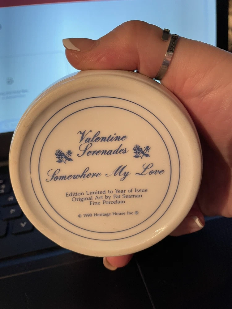 I have listed a round ceramic music box that plays "Somewhere my Love". It is made by Heritage House, Inc. Really pretty with flowers and butterflies w/gold trim. Happy Bidding and if you win auction please leave feedback as I will do the same for you. Have a great day!