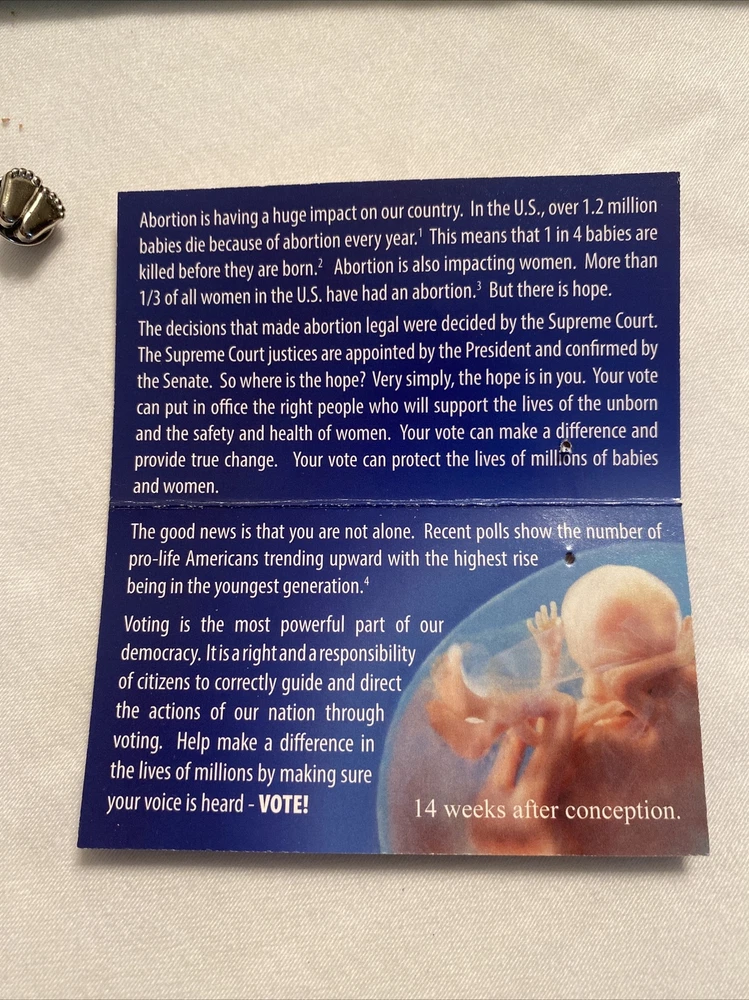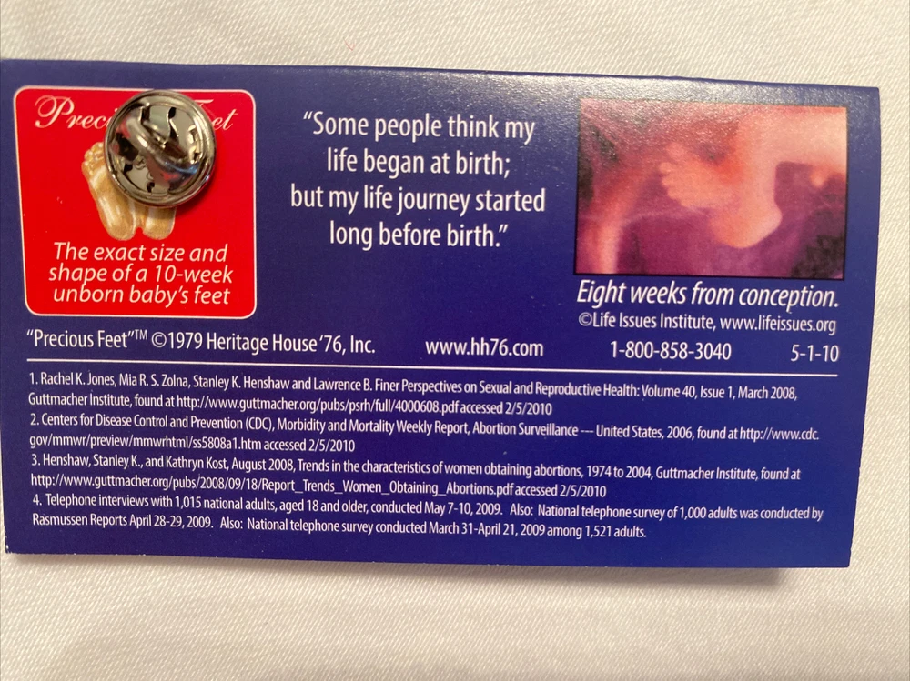 Heritage House “Vote Pro-Life” Precious Feet Lapel Hat Pin Silver Tone New.