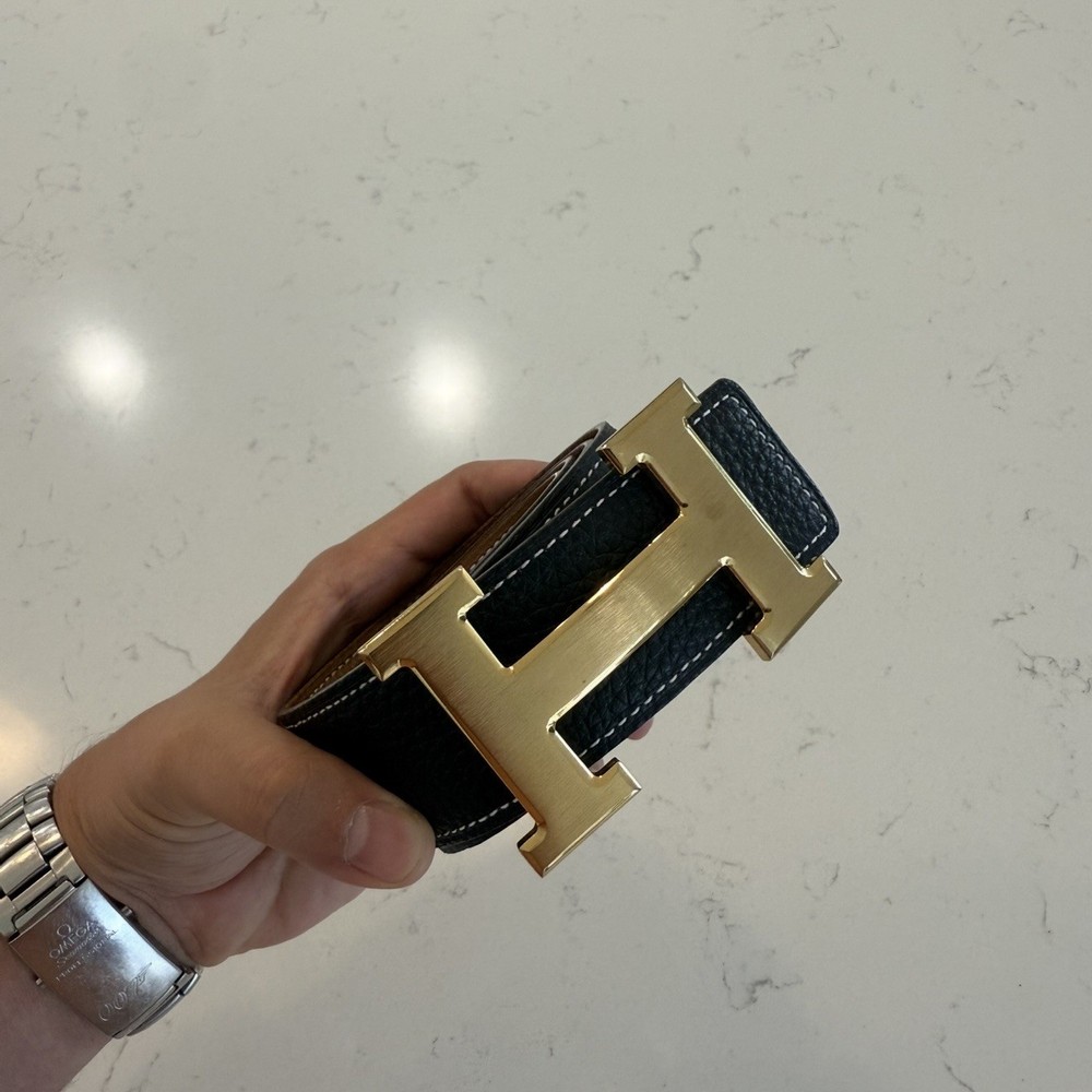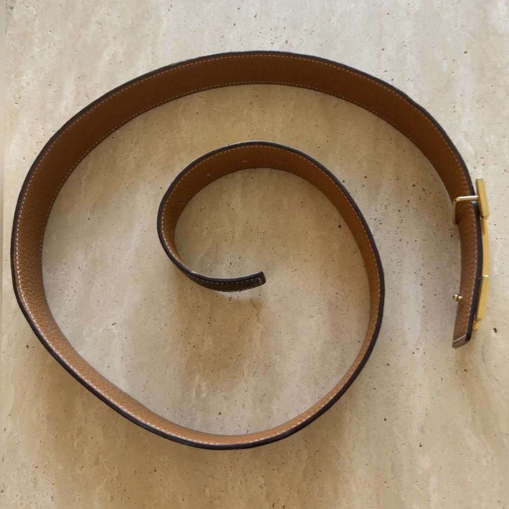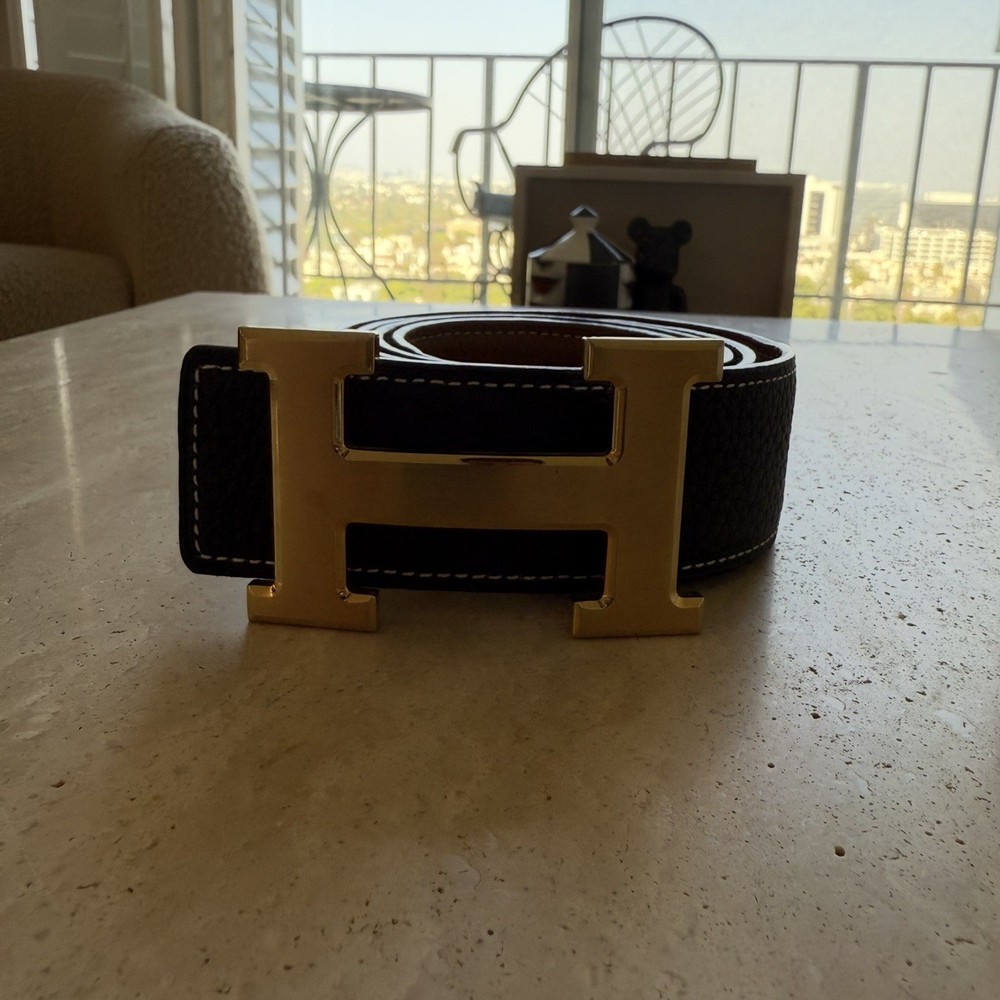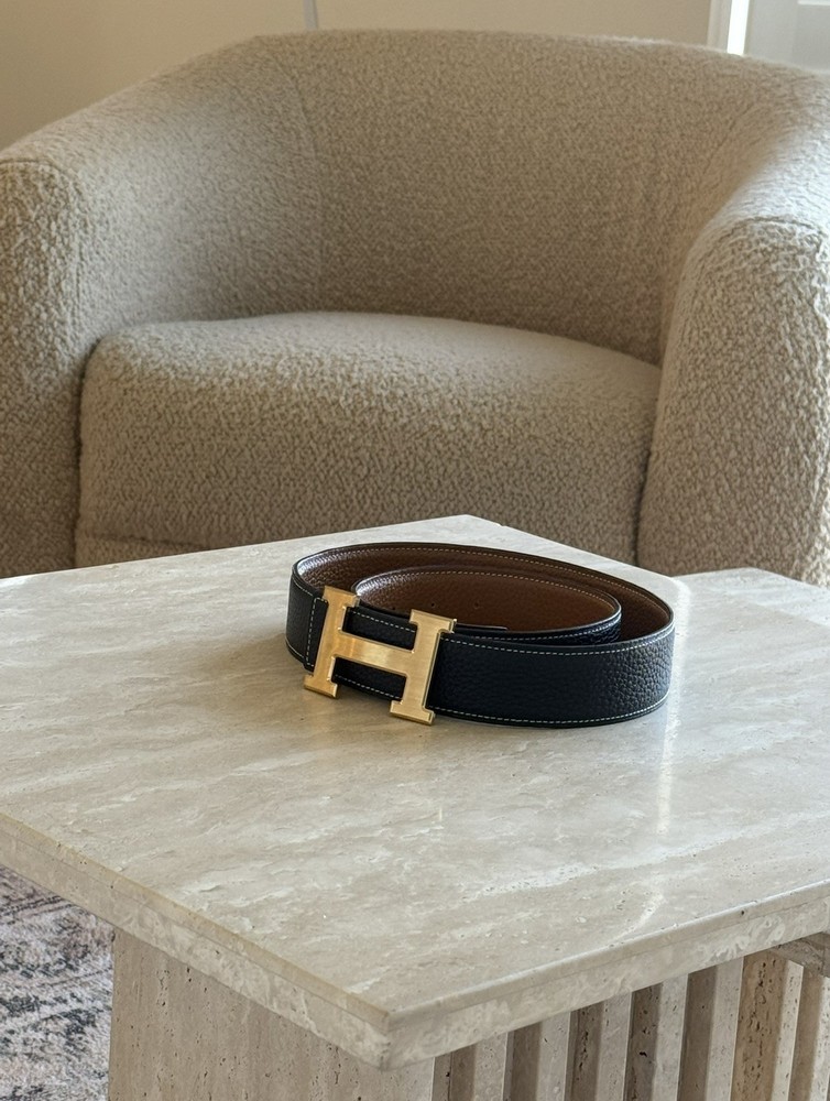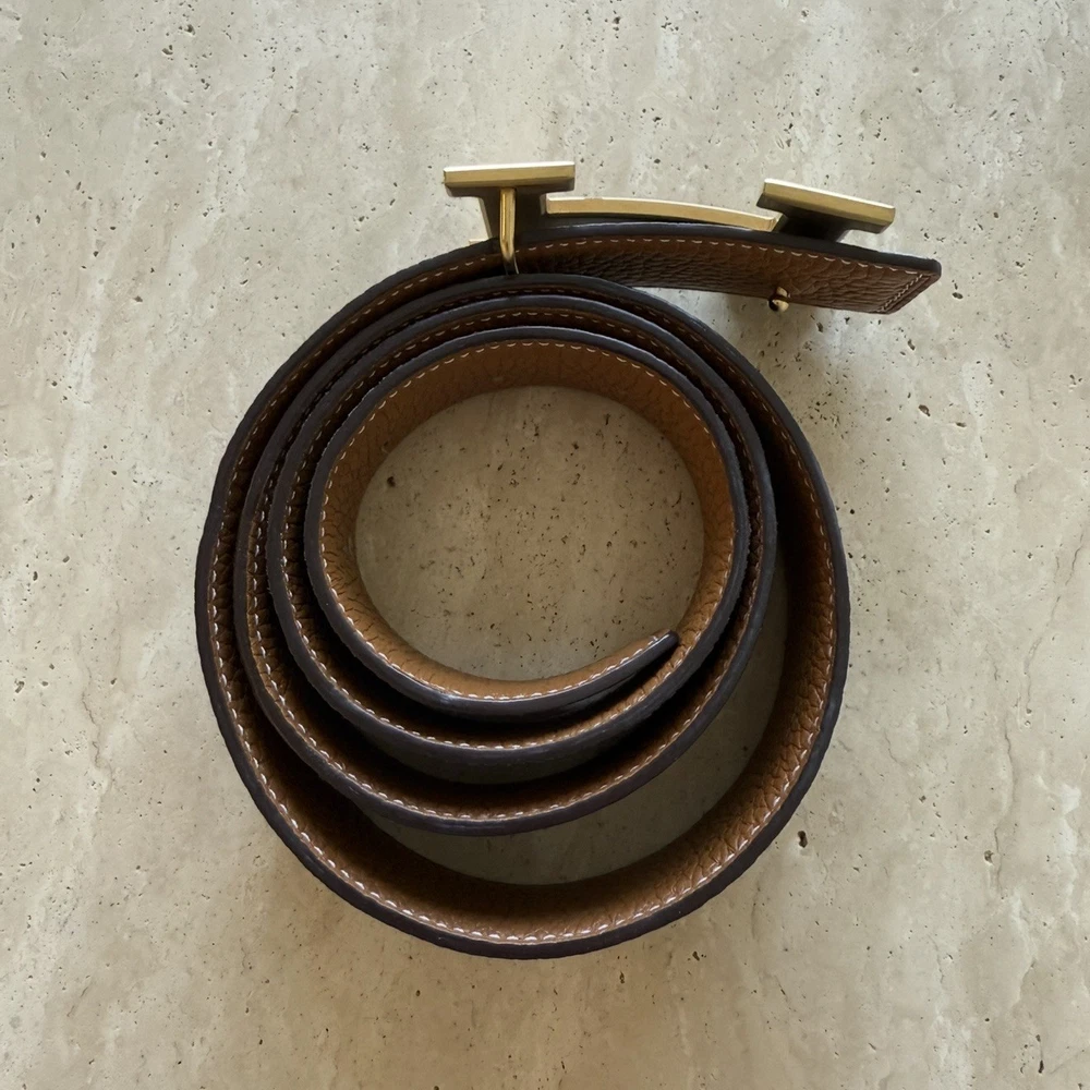 Hermès H buckle reversible belt Black/Tan Gold Hardware. Condition is Pre-owned - Excellent. Shipped with USPS Ground Advantage.