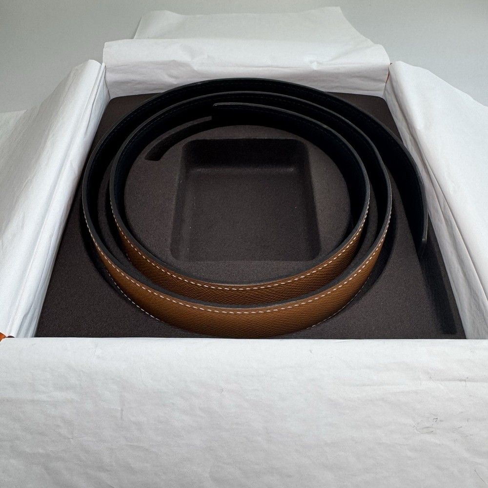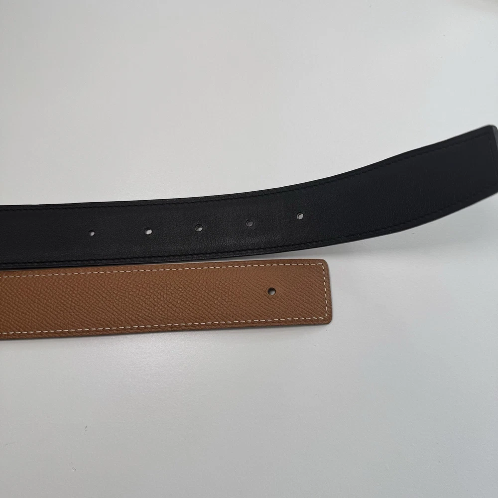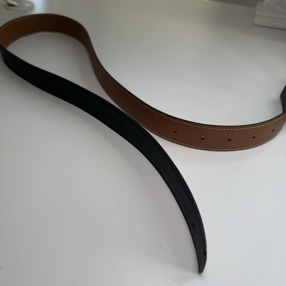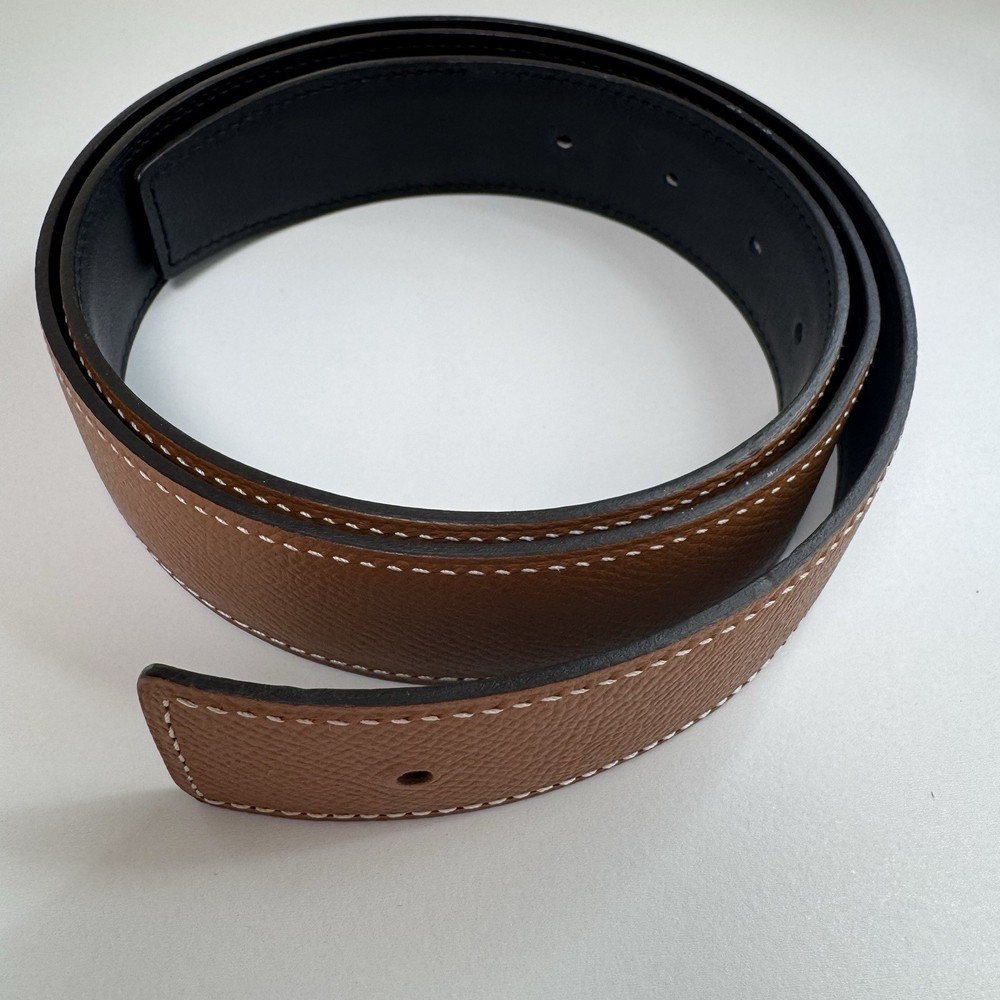Authentic Hermès reversible leather belt strap in size 95cm, featuring a classic brown side and black (noir) reverse. This is strap only (no buckle included). Timeless, versatile color combination that works with a wide range of Hermès H buckles. Leather is in very good condition with normal light wear consistent with careful use. Includes original Hermès box. Stamped and coded, guaranteed authentic.