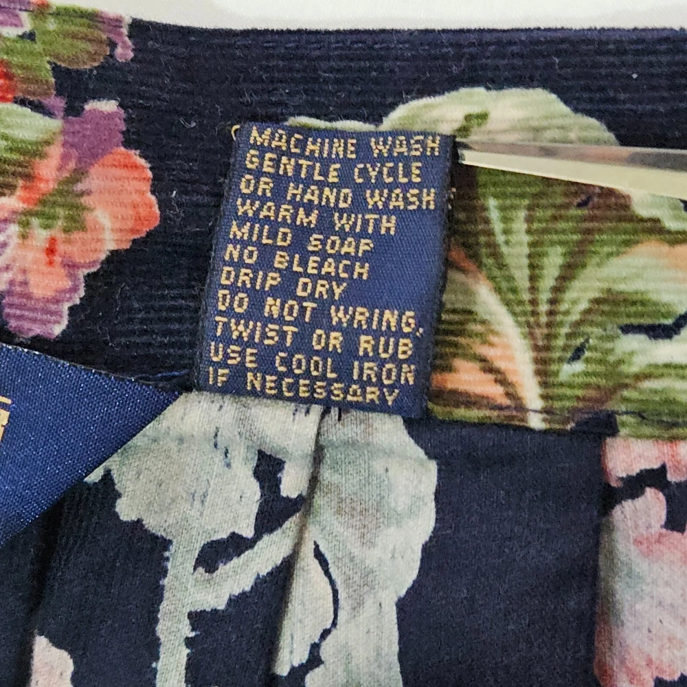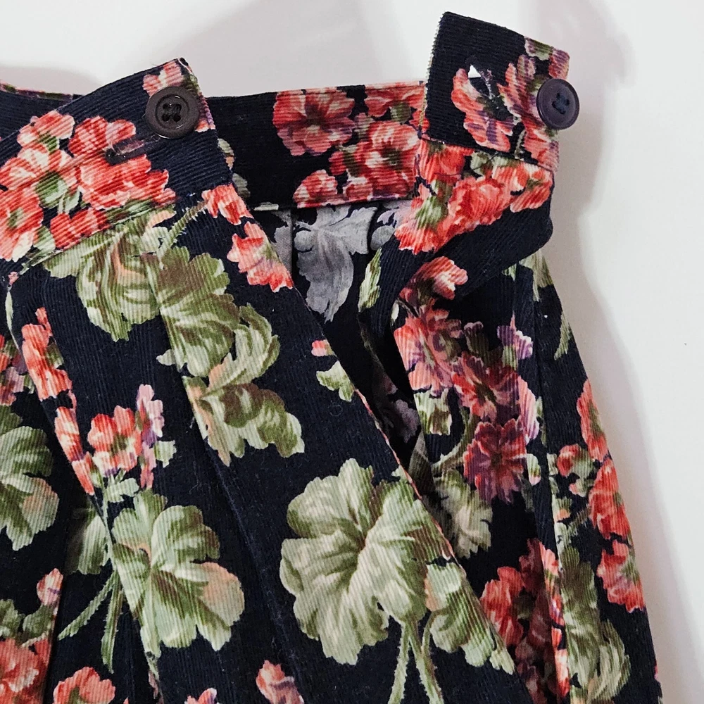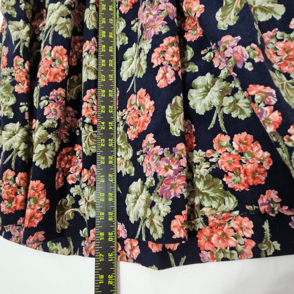 This skirt is absolutely gorgeous! The vintage floral pattern on soft corduroy is so charming, and the fit is perfect—comfortable yet flattering. The side button closure adds a cute detail, and the below-knee length is just right. It’s in pristine condition, super clean with no flaws. The 100% cotton feels breathable and high-quality. Love the classic, feminine vibe—great for dressing up or down!