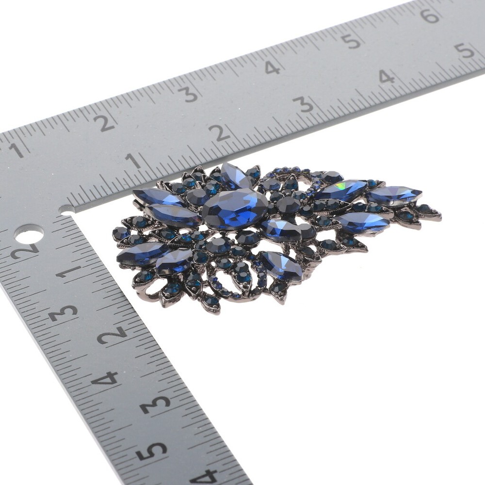Hermatite Tone Metal Crystal Rhinestone Flower Brooch / Approximate Size: 3.5" L x 2.25" W / Rhinestone / Metal / Lead & Nickel Compliant / Color: Hermatite & Montana Condition: Brand New SKU: P1246-MON Color: Montana Design: Flowers & Plants All orders will ship from USA via UPS or USPS. We expect all local orders will receive the items within 7 business days or less depend the location. Worry free international shipment delay or custom duty fee.