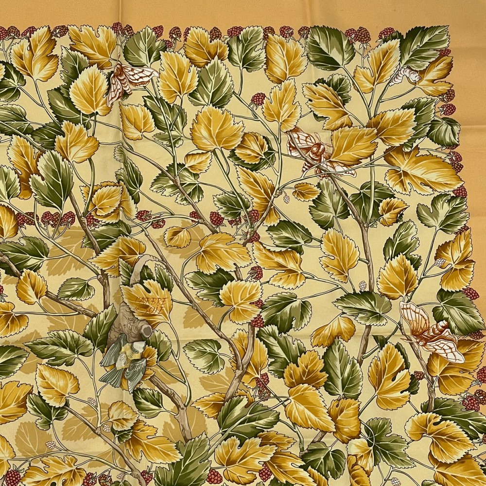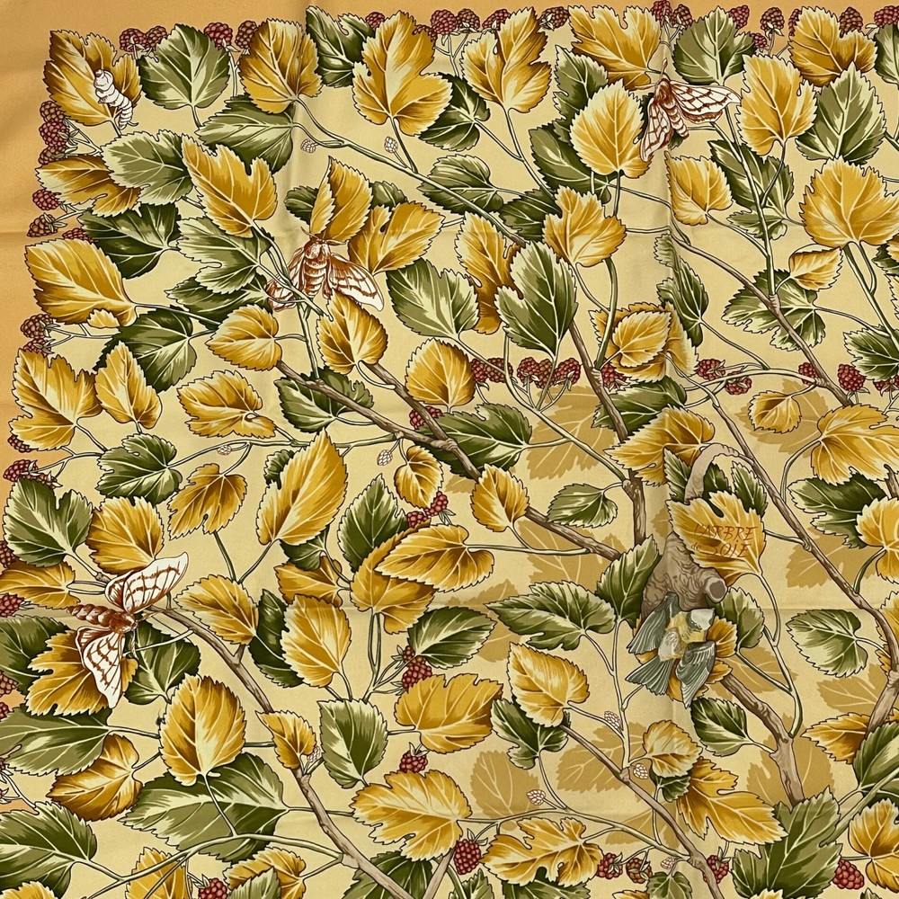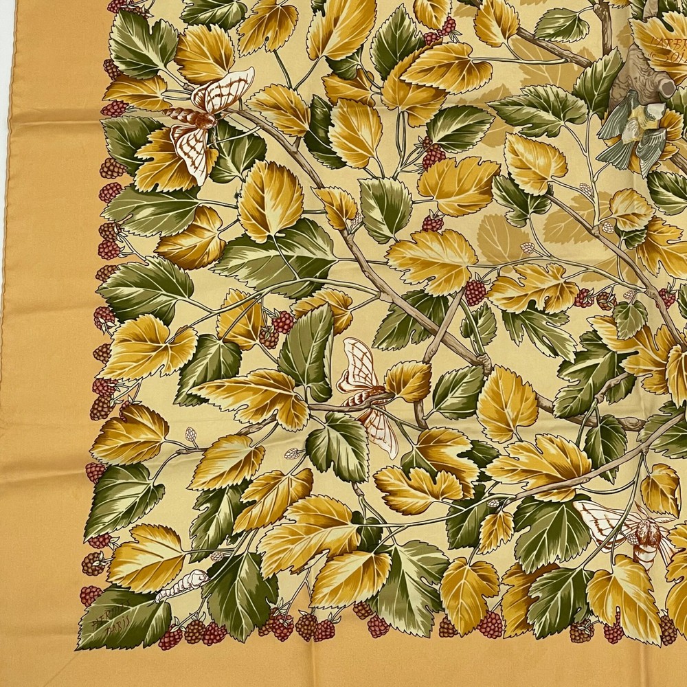 Hermes 90 LArbre De Soie Silk Scarf Yellow Mulberry Tree Silkworm Design