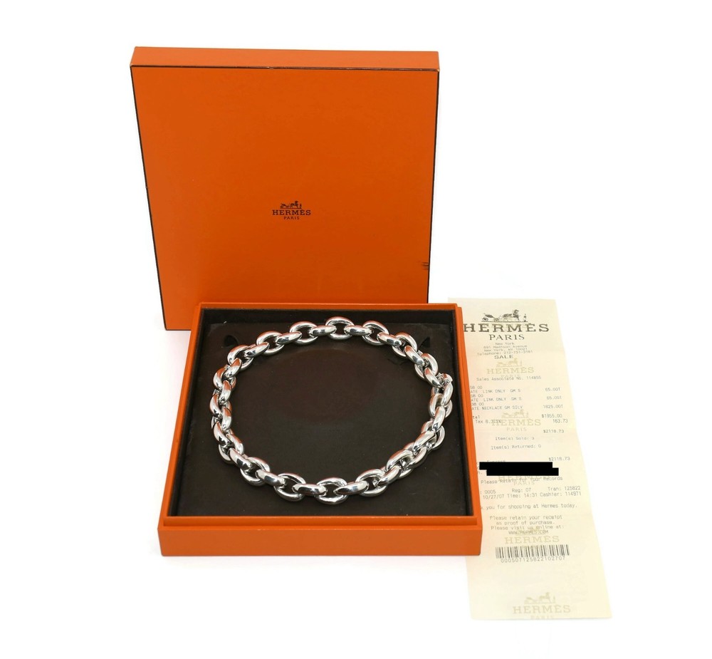HERMES ACROBATE GM STERLING SILVER NECKLACE LENGTH:18 INCHES WIDTH:16MM WEIGHT:390 GRAMS SKU:12-25/10-1 COMES WITH PURCHASE RECEIPT 100% AUTHENTIC WITH BOX Recommended products Provided by John Hardy Sterling Silver Necklace View product John Hardy Sterling Silver Necklace View product David Yurman Sterling Silver Necklace View product John Hardy Sterling Silver Necklace View product Tiffany & Co Lovestruck Sterling Silver Necklace View product David Yurman Citrine Sterling Silver Necklace View product David Yurman 14K/Sterling Silver Necklace 6mm View product Bulgari Save The Children Sterling Silver Necklace View product