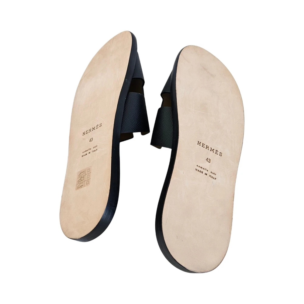 Hermes Black Leather Izmir Flat Sandal, 43 Attributes Material : Leather Color : Black Condition Desc. : Like New Size : 43