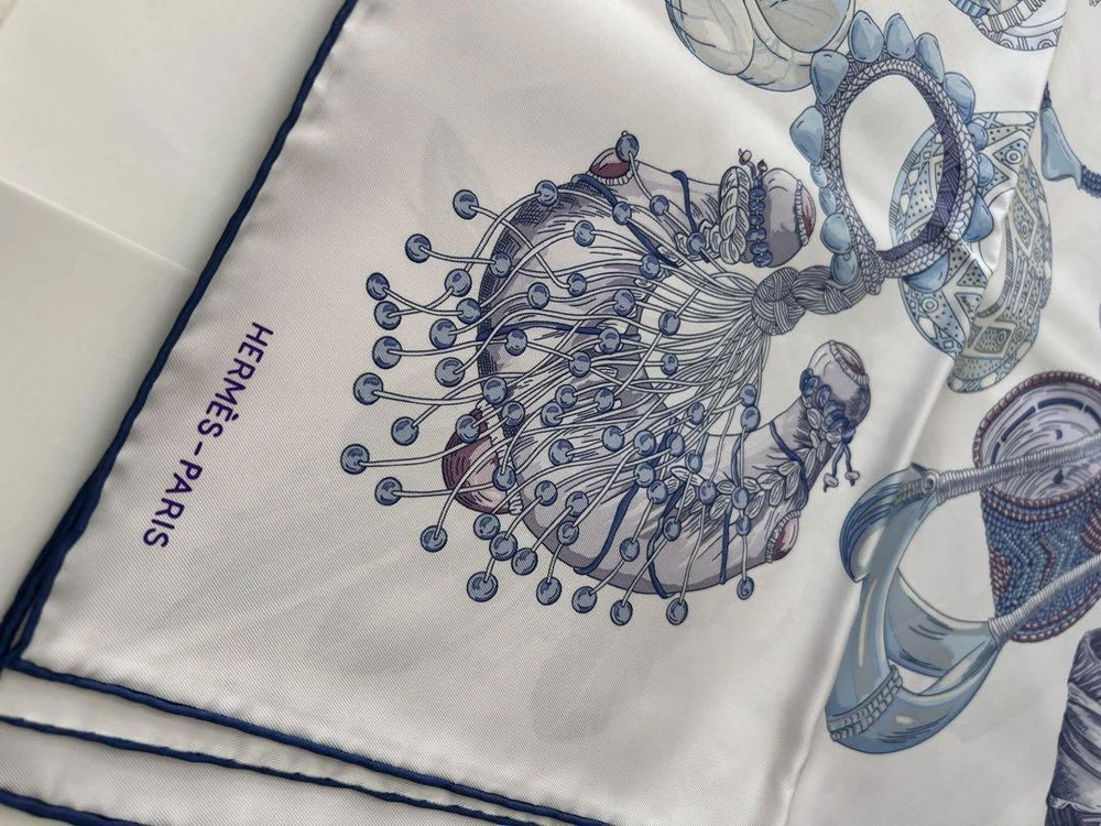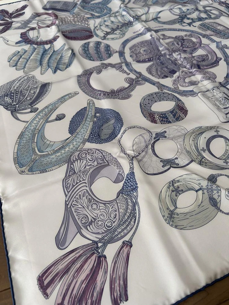 Hermes Carre 90 Scarf ”BRACELETS DE LUMIERE" Bracelet of Light with box From JP Description Condition: Used Hermes Carre 90 Scarf "BRACELETS DE LUMIERE" It was purchased at a Hermes directly-managed store in Japan. The pattern is called “Bracelet of Light” and the size is just under 90cm. The tag is attached. It is a beautiful item, but please do not buy it if you are sensitive to details. It comes with a box. Payment Please pay within 5 days after the auction closed. Shipping About other area, please ask me. When you purchase two or more my items, I can send them together and discount shipping cost. Returns Returns are accepted ONLY if the item was not the item described. International Buyers - Please Note: * Import duties, taxes and charges are not included in the item price or shipping charges. These charges are the buyer's responsibility. * Please check with your country's customs office to determine what these additional costs will be prior to bidding/buying. * These charges are normally collected by the delivering freight (shipping) company or when you pick the item up - do not confuse them for additional shipping charges. * We do not mark merchandise values below value or mark items as "gifts" - US and International government regulations prohibit such behavior.