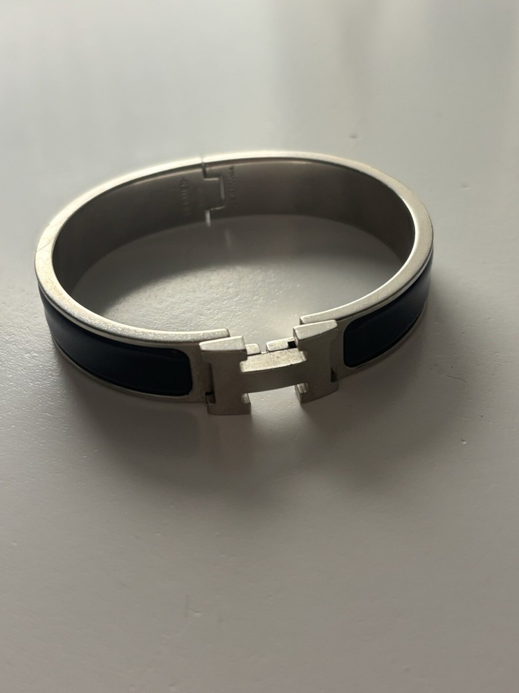 This Hermes Clic H Bracelet is absolutely stunning! The navy and silver combo is so elegant and versatile—it pairs perfectly with both casual and dressy outfits. The craftsmanship is top-notch, and the iconic H clasp adds a luxurious touch. It’s comfortable to wear all day and feels like a timeless piece. Definitely worth the splurge!