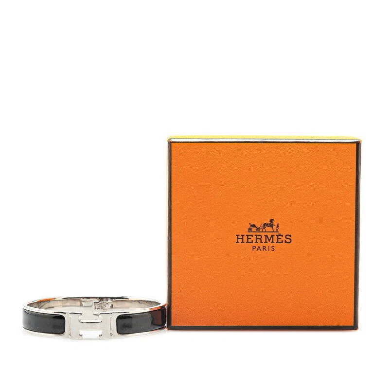 This Hermes Clic H bangle is absolutely stunning! The sleek silver and black metal design adds a touch of elegance to any outfit. It feels luxurious and well-made, just as expected from Hermes. Shipping was fast, and the seller was professional. A perfect accessory for those who love minimalist yet statement jewelry. Highly recommend!
