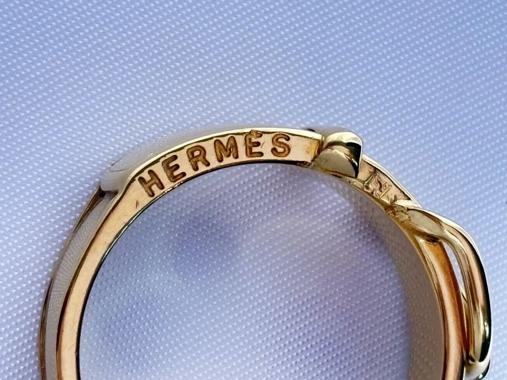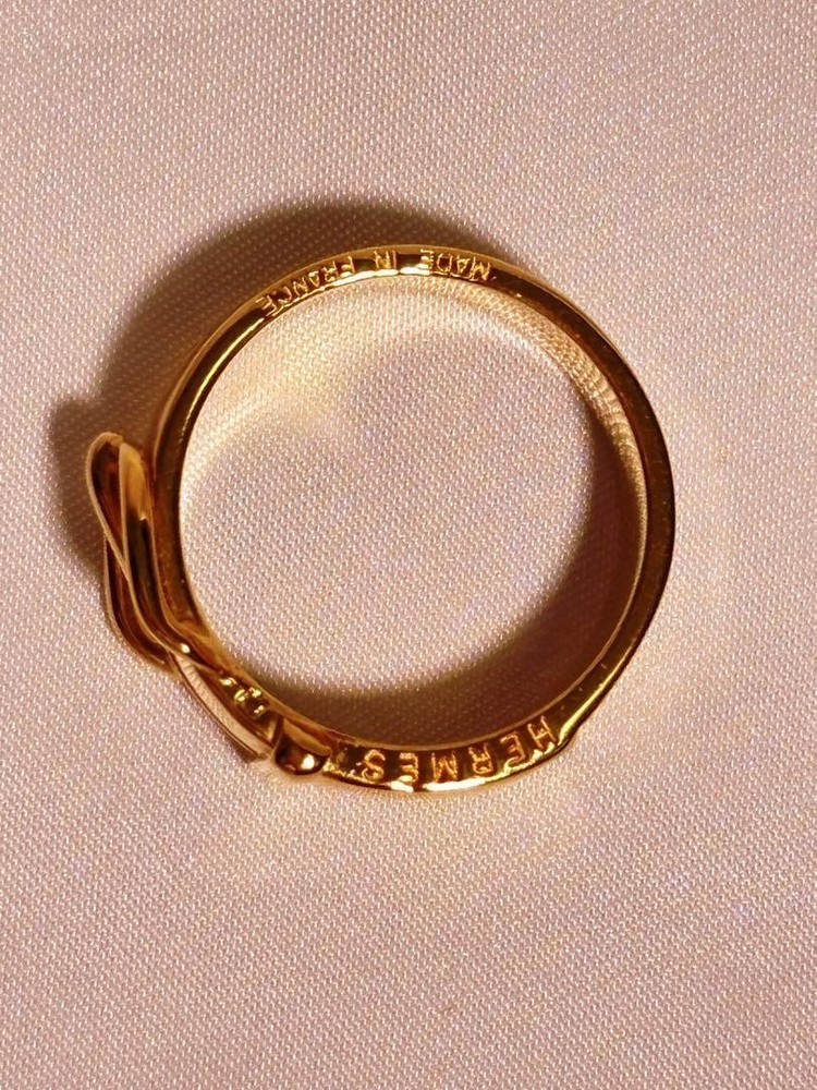 Absolutely love this Hermès scarf ring—elegant, timeless, and the gold motif adds a luxurious touch. Perfect for dressing up any outfit. Fast shipping, item arrived in pristine condition. Seller is reliable and professional. Highly recommend!