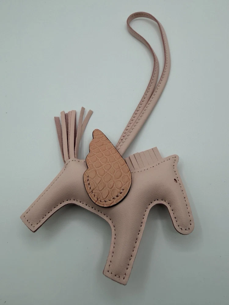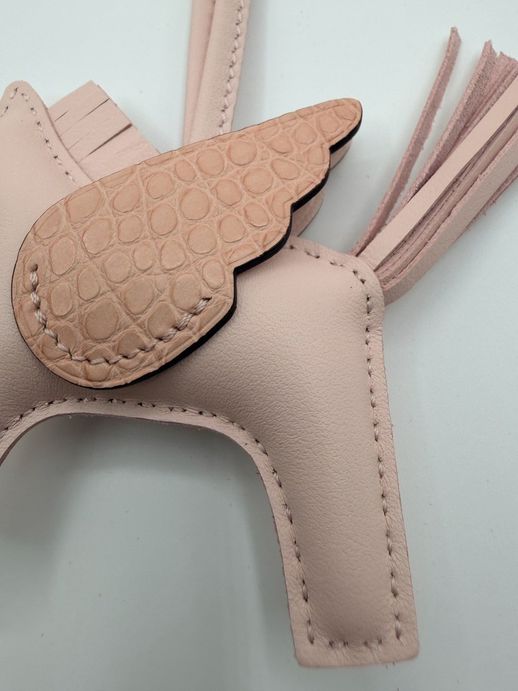The Hermes Pegasus Bag Charm in pink is a luxurious handbag accessory that adds a touch of elegance to any outfit. Made from high-quality leather, this charm features a rodeo theme and is crafted with lambskin and swift calfskin fabric. Its lightweight design makes it convenient to carry around, perfect for adding a stylish touch to your handbag anytime, anywhere. This accessory is a chic and fashionable gift for any woman who appreciates fine craftsmanship and exquisite design.