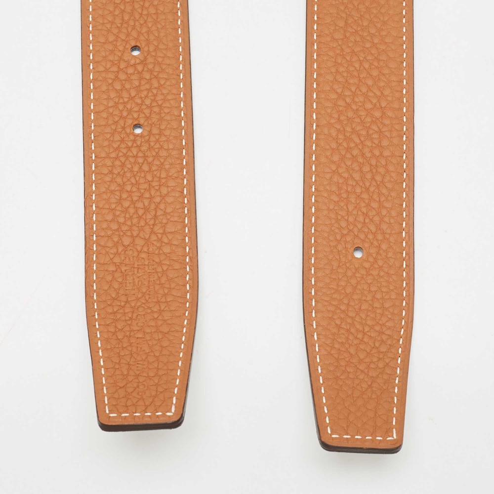 Upgrade your style with this Hermès belt strap in Gold and Noir. Made from premium Togo and Box leather, this reversible strap offers a luxe touch to any outfit.Certified by The Luxury Closet - This item has gone through a detailed authentication process overseen by our experts. We offer a lifetime guarantee of authenticity on all our items. Import duties, taxes and charges are not included in the item price. These charges are the buyers responsibility. Please check with your country’s customs office to determine what these additional cost will be prior to buying. Our eBay Store About Us Contact Us Add to Favorite Sellers Hermes Gold/Noir Togo and Box Leather Reversible Belt Strap 90 CM $503.8 Upgrade your style with this Hermès belt strap in Gold and Noir. Made from premium Togo and Box leather, this reversible strap offers a luxe touch to any outfit. Product Details Brand Color Brown Dimensions Width: 3 cm, Length: 90 cm Material Leather Size 90 CM Outsole Width Outsole Length Heel Height Includes Original Dustbag, Original Box Certified by The Luxury Closet This item has gone through a detailed authentication process overseen by our experts. We offer a lifetime guarantee of authenticity on all our items. How We Check The in-house team of experts at The Luxury Closet is highly trained to verify the authenticity and the condition of the luxury products. They ensure that only 100% authentic items are put on sale.The evaluation process is unique with its own mix of assessment criteria and differs according to the category. Each item is evaluated based on the following combination of hallmarks, hardware, stitching, symmetry, material, craftsmanship, stamping, codes, hologram stickers, and packaging. Our authenticators also check if the items have been modified or amended (e.g., aftermarket diamonds, replaced batteries, repaired bags, etc.) International Buyers Import duties, taxes and charges are not included in the item price. These charges are the buyers responsibility. Please check with your country’s customs office to determine what these additional cost will be prior to buying.