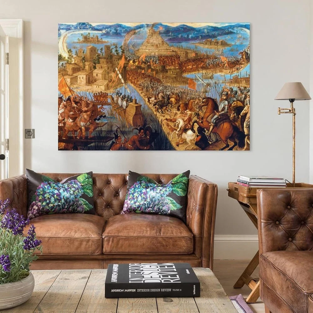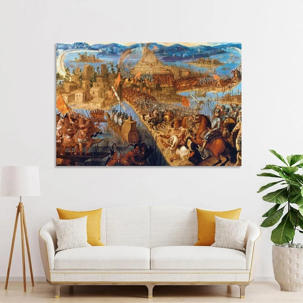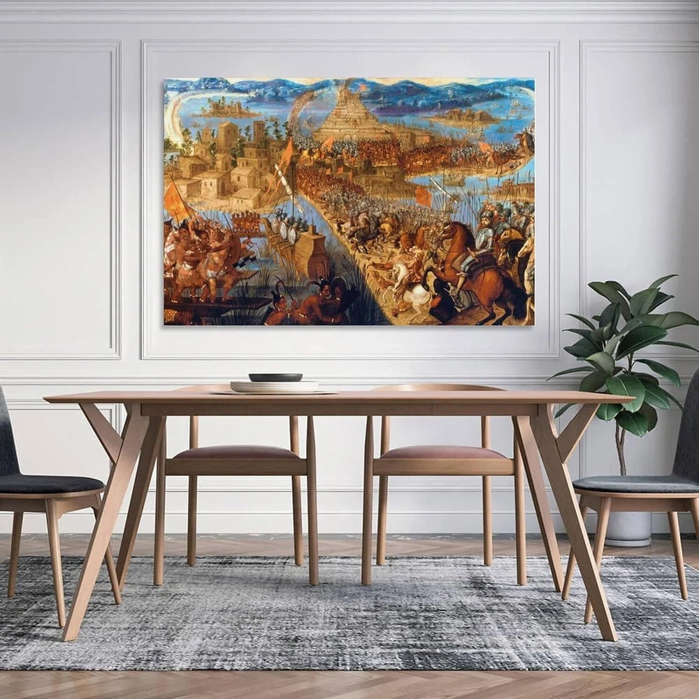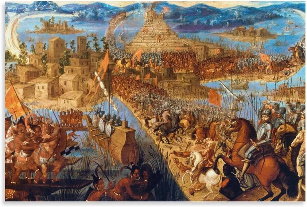 Hernán Cortes Conquest of The Aztec Empire - The Fall of Tenochtitlan Oil Poster