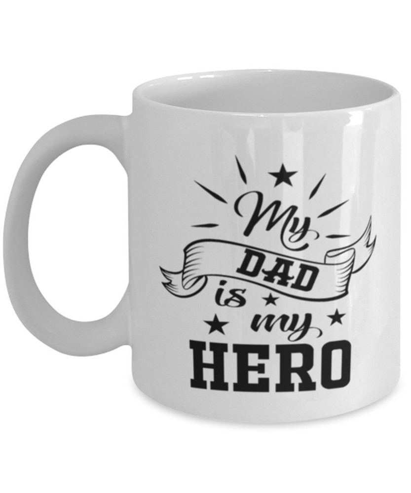Hero Dad Funny Coffee Mug My Dad My Hero Father’s Day Gift Gift From Son Gift Product Details.. This high quality 11oz. ceramic white mug has a premium hard coat that provides crisp and vibrant color reproduction sure to last for years. Perfect for all hot & cold beverages. The highest quality printing possible is used. It will never fade no matter how many times you wash it. Material: 100% Ceramic. Print both sides. Dishwasher and Microwave Safe. High Gloss + Premium White Finish. Printed in the U.S.A. Personalized & Custom. We support personalized and custom mug to add custom, when placing an order, you can add notes to the "order note" in shipping address section. Also you can contact us directly via message. Shipping Info. Ready to ship in 1 to 2 business days, All products are made-to-order and proudly printed in the United States. Shipped by USPS and DHL, You will receive your order in 5-7 days. Replace & Refund. All products are defective during shipping broken, chipped will be replaced free of charge. You are not satisfied with the product, we will refund 100% money to you. If any other issues arise, please do not hesitate to message, we would be more than happy to assist you.