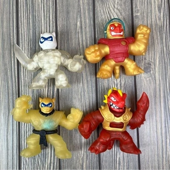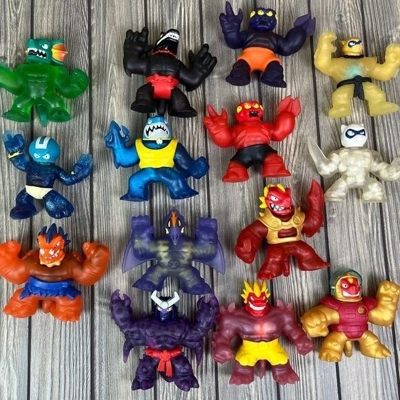 Heroes of Goo Jit Zu Action Heroes Figurines Toys Bundle Lot of 14 Super cool squishy gooey figurines Three on the left are more solid than the rest, the others are squishier / stretchier